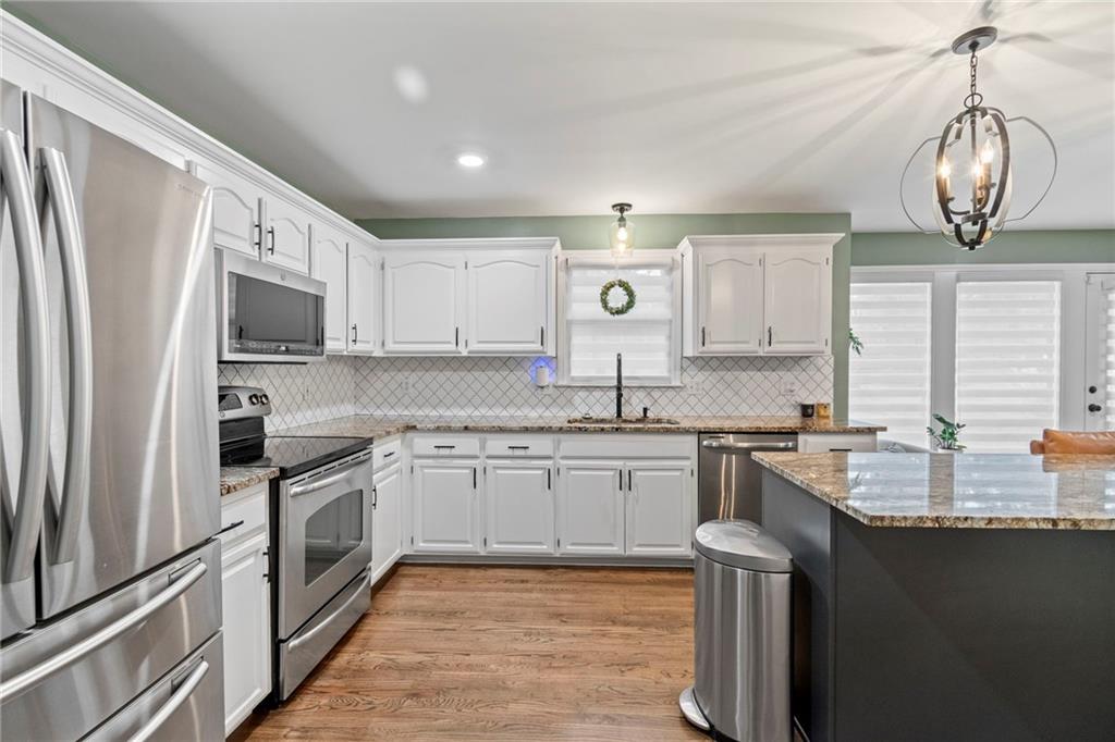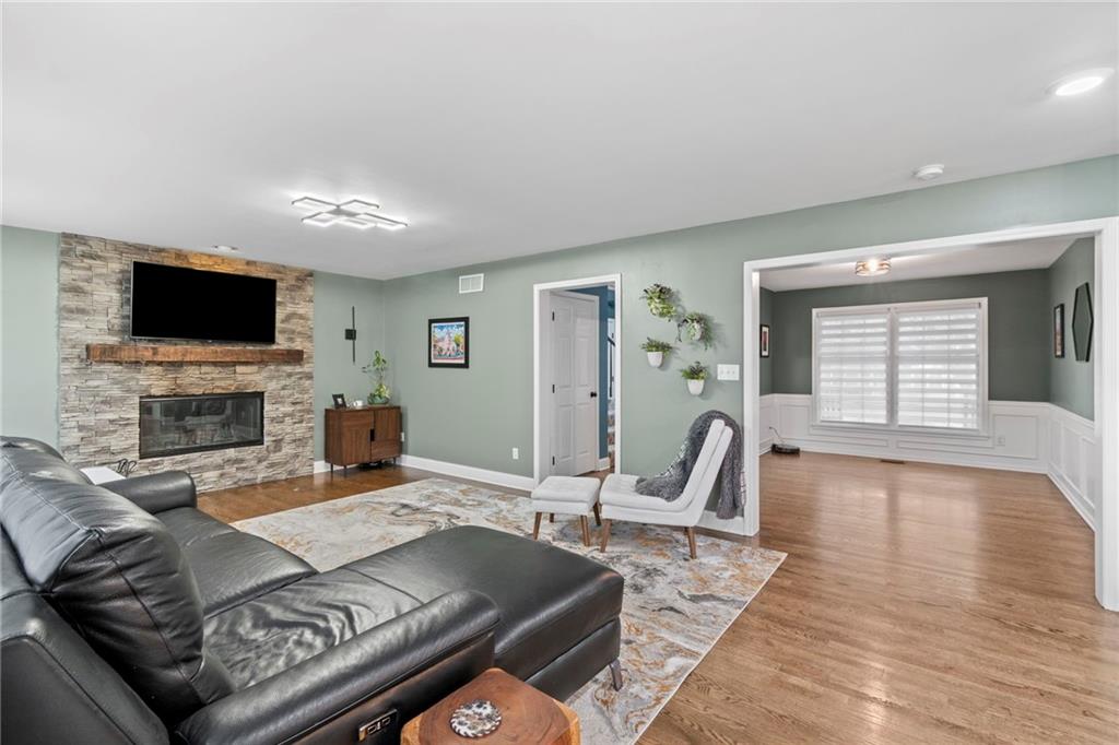 WELL MAINTAINED 2-STORY ON A QUIET TREE LINED STREET WITH A FRONT PORCH FOR RELAXING. Formal Dining Room just off the entry and beautiful hardwood floors throughout the main level. Open floor plan with kitchen/great room updates in 2020. Added new hardwoods, granite countertops, new island and remodeled 1/2 bath and off-kitchen laundry room with luxury vinyl tile. Newer stainless steel appliances. New stone and mantel on fireplace. Custom blinds throughout first floor. Upstairs has 4 bedrooms with an oversized Master. Master Bath has double bowl vanity, Jetted tub, and large Walk-in closet. Beautiful large window in second bedroom could make a sun-filled office space! Tile and carpet in finished basement with 1/2 bath and a wet bar for entertaining. Large storage room adds to the basement space. Step out of the kitchen onto a peacefully landscaped backyard with patio and a HUGE side yard. NEIGHBORHOOD HAS TWO SWIMMING POOLS AND PLAY AREA WITH PLAYGROUND. Large picture windows with views of the beautiful treed lot throughout the home! Convenient access to highways, dining and shopping and located in award winning Liberty School District. This home is move-in ready and it shows!!!