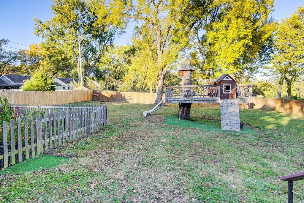 Welcome home for the holidays to this completely updated, well maintained home on a 1/2 acre flat, private lot! Nestled in on the quiet end of Nall (dead ends just north), you will fall in love at first sight! Sip your morning coffee on the HUGE covered front porch, or take in the beautiful sunsets on the oversized back deck overlooking a parklike fenced in yard with a kid's dream treehouse. Step inside to the 4 bed, 3.5 bath home with THREE bedrooms on the main level. Entertain guests with your dream kitchen that includes ample storage, pantry, granite counters, bar seating, and beautifully updated tile backsplash. Cozy up to the wood burning stove fireplace and watch all your favorite movies this winter. Home features an oversized, 2 car detached garage and a large, flat driveway for the kids to play and ride bikes. Recent updates include a brand new roof and gutters, newer HVAC and humidifier, added butler's area just off kitchen, and new flooring in primary bath. You will LOVE this very walkable neighborhood that is the perfect proximity to shopping, highways, schools, Nall Park, Cedar Roe Library, and Roeland Park Community Center and Aquatic Center. You won't want to miss calling this one HOME!