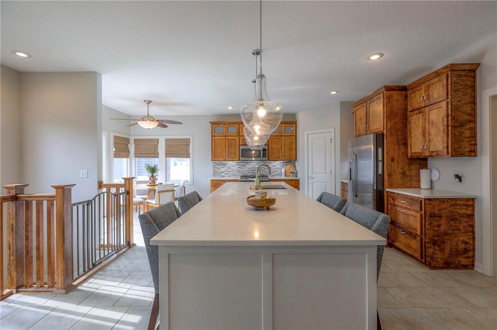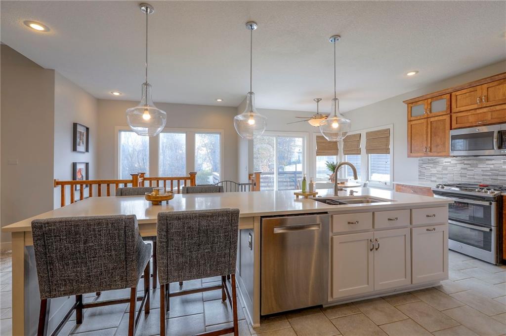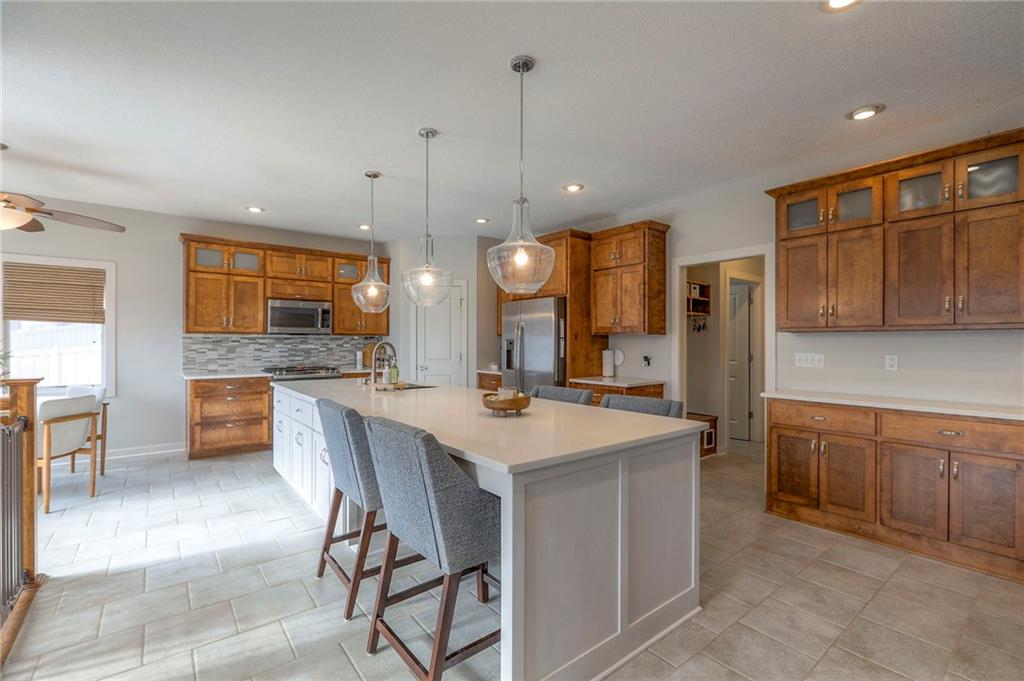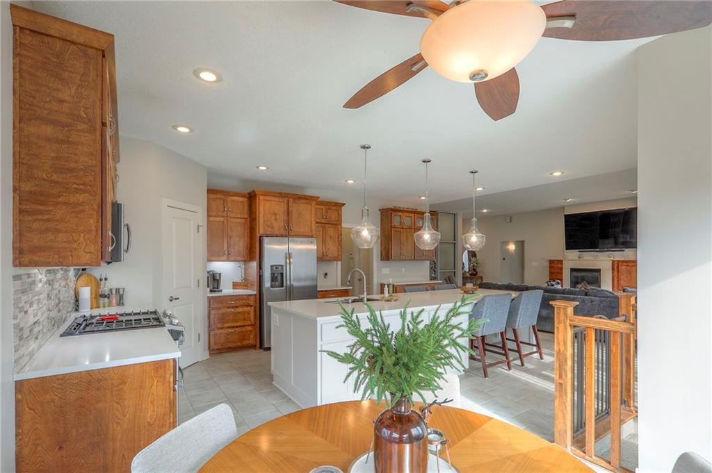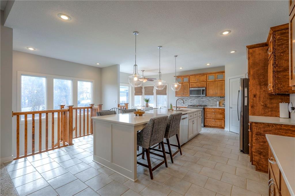 Discover this immaculately maintained, custom-built reverse 1.5-story home perched high atop the hills of the desirable Brittany Ridge subdivision. Flooded with natural light, this spacious layout offers both comfort and convenience with the primary suite and a second bedroom located on the main level. The beautifully designed kitchen features a huge island, gas cooktop, double ovens, and a large walk-in pantry—perfect for everyday living and entertaining. A bright breakfast area opens directly to the upper deck, creating an ideal indoor/outdoor flow. The walkout lower level expands your living space with two additional bedrooms, full bathroom, a dedicated office, a generous great room complete with a wet bar, plus a workshop/storage area. The oversized, three car garage has plenty of room for vehicles, storage, tools, and hobbies. Enjoy the outdoors in your fenced backyard with both upper and lower decks and a peaceful backdrop of mature trees. This home has been exceptionally cared for and is truly move-in ready. Room sizes, square footage and taxes are estimates and should be verified by buyer.