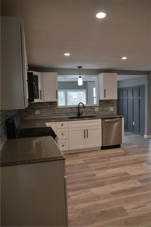 Stunning Home! Freshly remodeled! This one is complete with a beautiful new Kitchen, classy cabinets, granite countertops, and stunning tile backsplash and new appliances! Wow! The front entry has a convenient coat hook wall, bright windows & could be a great place for a boot bench or a puppy hang out when the humans are away. The family room is just off the kitchen & is a spacious size. The Master Suite is on the main floor and has a master bath with a tub/shower and a pretty vanity and walk-in closet. There are 3 additional rooms on the second level. One has a number of built in cabinets & is just waiting for games & puzzles to be tucked away and or possibly a super craft room. The other two rooms are classy with impactful accent walls. There are two full baths are on the main level, one in the master and the other off of the kitchen. The back yard is quite spacious and has a shed & a fire pit. This home is just waiting for you. Schedule your showing today!