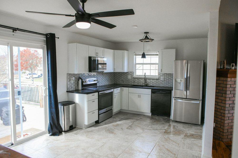 OPEN HOUSE SATURDAY 11AM-3PM — Stop by while it’s quiet for a private tour! 11/29 Beautifully updated home in the Northland with major improvements inside and out. The kitchen was fully remodeled in 2024 with quartz counters, new cabinets, tile floors, stainless-steel fridge, and a heat-sensing microwave. Updated lighting throughout the main level. The upstairs bath features modern black fixtures, new tub/shower hardware, and a new exhaust fan/light. Roof replaced in 2024. Exterior upgrades include new solar driveway lights, black shutters, railing, perennials, pavers, mulch, and a privacy-fenced walkout. Yard has been professionally treated and aerated. Garage offers a built-workbench, shelving, keypad, and wiring for Google Fiber and Vivint. Quiet neighborhood close to schools, shopping, highways, and just 11 minutes from KCI. FSBO and move-in ready.