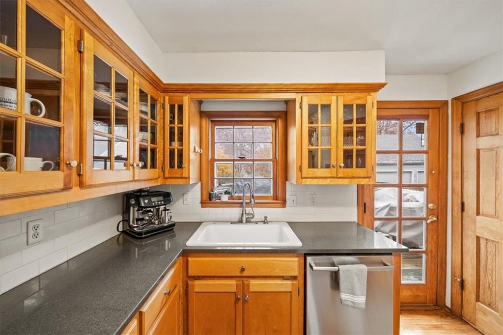Charming inside and out, this Westwood 2-story home sits on a picturesque, tree-lined block and a large lot. Beautifully updated with original character & detail, including curved archways, hardwood floors, fireplace, and woodwork. Living room with a sitting area next to the fireplace, perfect for a cozy Winter day. Private den/office space off the main living area. The dining room features a new, built-in banquette and light fixture. Main-level half bath off the kitchen. All appliances stay with the home, including the washer/dryer. Large primary with a walk-in closet. Updated interior paint. Full, dry basement with lots of storage. Attached garage and storage shed in the backyard. Large deck overlooks the big backyard. Room to add onto this house and still have a big yard. Walk to coveted Westwood View Elementary, Fairway Shops, Woodside, St. Agnes, Miege, parks, and more. Minutes to the Plaza and the highway. SM East area.
