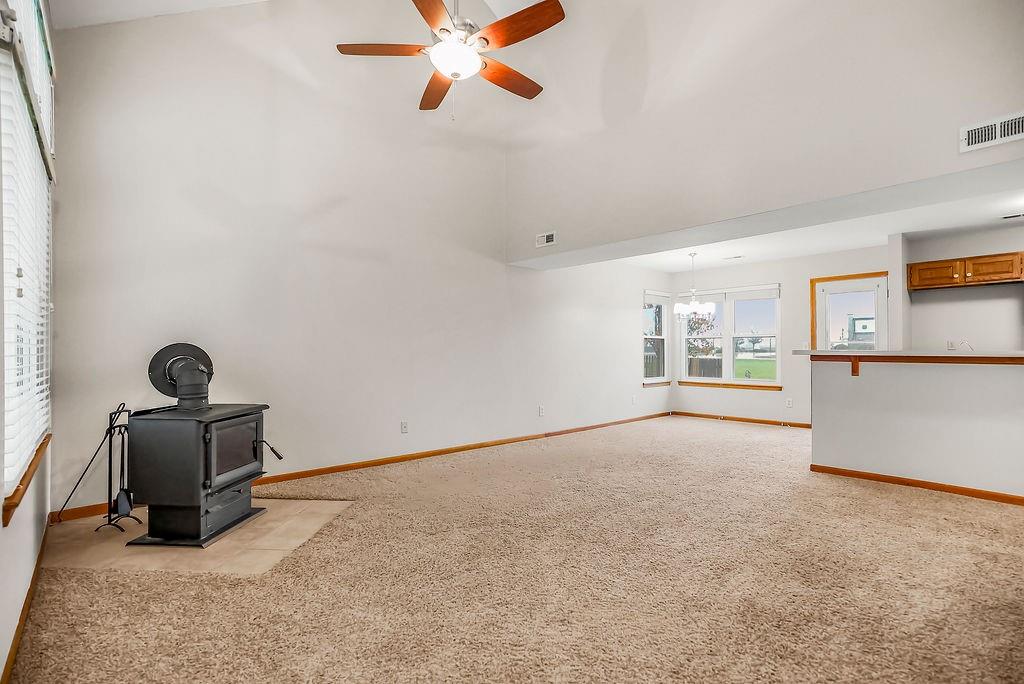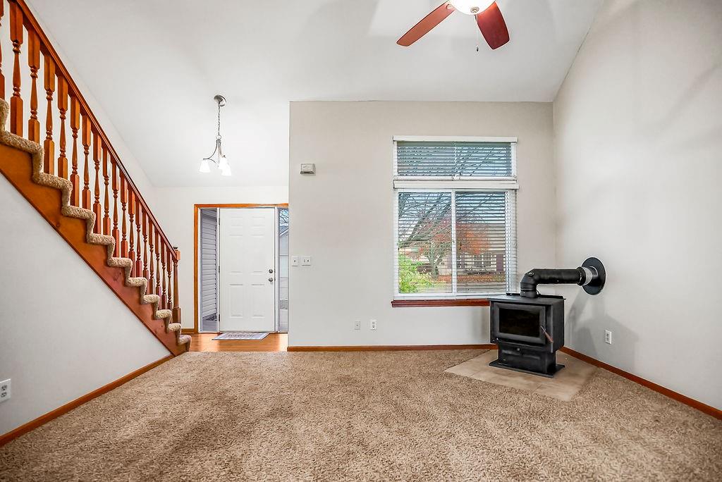 Home for the Holidays in Gardner, KS! This charming, one-family-owned home is truly move-in ready! Fresh interior paint and professionally cleaned carpets set the stage for comfortable living. Enjoy energy-efficient, all-electric convenience with maintenance-free vinyl siding, a cooling attic fan, wood burning stove and brand-new thermal windows. Prime Location Nestled in the welcoming community of Gardner, KS, this property is within walking distance of shopping, dining, and local amenities. Inviting Spaces A covered front porch greets you warmly. Step inside to a spacious vaulted great room featuring a ceiling fan and cozy wood-burning stove. The adjoining breakfast nook flows into a galley kitchen with a raised countertop—perfect for bar stools and casual dining. Smart Layout The laundry room, complete with storage cabinetry, is conveniently located between the main living area and the first-floor primary bedroom. Comfortable Bedrooms Upstairs, you’ll find two generously sized bedrooms with ceiling fans and a full hall bath. A walk-in attic provides even more storage space. Garage & Storage The double-car garage includes two openers with remotes, plus shelving and cabinets for tools. A pull-down ladder offers easy access to the attic. This home combines practicality, charm, and location—ready for you to make it your own this holiday season!