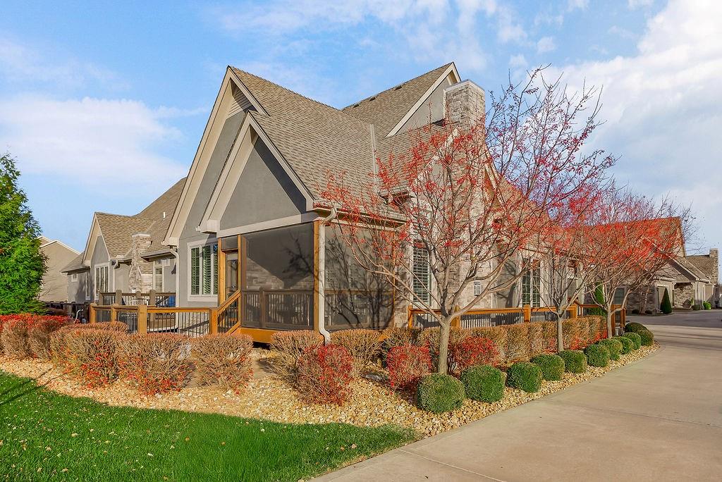 STUNNING "Reverse 1.5-Story" in Leawood! It’s maintenance-provided, and the key to easy living! Immaculately cared for and truly in “mint condition,” this end-unit home offers crisp, modern updates, main-level living, and an effortless lock-and-leave lifestyle. The main-floor primary suite includes an oversized shower, upgraded granite dual vanities, and a walk-in closet. You’ll love the vaulted great room with upgraded ceiling trim and the refreshed kitchen featuring freshly painted cabinetry, new rollout shelving, a breakfast bar, and a true walk-in pantry. The screened-in porch is incredible—opening to a stamped-concrete patio perfect for grilling and overlooking beautifully manicured grounds. The finished lower level feels bright and open with taller ceilings, a spacious family/rec room, two generous bedrooms with walk-in closets, and another full bath. A large unfinished area provides excellent storage. Leabrooke Town Manor offers a resort-style experience with a private pool, clubhouse with 24-hour gym access, walking trails, stocked fishing pond, and tennis/basketball sport courts. Exterior maintenance is handled for you here, so you are more free to enjoy the amenities – so many of them nearby. Exterior maintenance includes all of these: roof repair/replacement, exterior painting, mowing/trimming/fertilizing/sprinklers for the lawns, as well as your interior WATER bill, insurance for the townhome buildings, professional management services, etc. HOA info/details are in the Realtor MLS supplements and the binder at the home. Unbeatable South Leawood location—just minutes from Leawood Town Center, PrairieFire, top-tier dining and shopping, IRONWOODS PARK, mulitple golf courses (public & private), world-class fitness options, and Chicken N Pickle. Everything you love is close by. The easy lifestyle is here!