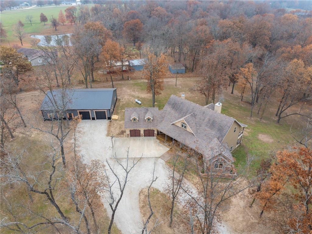 PRIVATE RESIDENCE OF A FOURTH GENERATION HOME BUILDER on 23.5 picturesque acres! One of a kind custom home offers over 6,200 finished square feet, 5 Bedroom, 4 1/2 bathroom + non-confirming 6th bedroom (7,000 SF total when including gym & basement workshop). LOCATED 6.5 miles north of Warrensburg and 13 miles south of I-70, making the Kansas City commute a breeze. Through the keypad operated electric double gate, the driveway leads past the 1st pond w/ swim dock, up to the residence w/ a stamped & stained concrete covered porch that offers some of the most breathtaking sunrises imaginable. FIBER INTERNET is available at this property. The 2,650 SF main floor features hardwood floors throughout, floor to ceiling stone wood burning fireplace in the living room. The custom chefs kitchen w/ 3 ovens, commercial grade appliances & a large kitchen island for gathering. The hearth room offers a gas fireplace and an abundance of natural light. The primary bedroom suite includes an electric fireplace, double closet, double vanity, built-in furniture, large tile shower & a private laundry room. Upstairs, 3 large bedrooms, 2 full bathrooms, laundry & a bonus non-conforming (6th) bedroom / play room. The finished walkout basement includes a large family room w/ electric fireplace, a custom dog kennel w/ dog door to the outside, fitness gym, 5th bedroom, full bathroom, and workshop / storage. Upgraded features include 2x6 construction, two geothermal heat-pumps for efficiency, two rear decks (one covered that runs entire length of home). A newly constructed 44' x 64' shop w/ 240V electric, two garage doors, concrete floor & bi-fold hanger style door for all of the toys & equipment. The fenced acreage is currently set up for sheep and includes a 20x30 animal barn w/ running water, a second pond for animals & a mixture of pasture and timber for hunting. This custom home is one you don't want to miss. Too many features to list! Call today to schedule a showing!