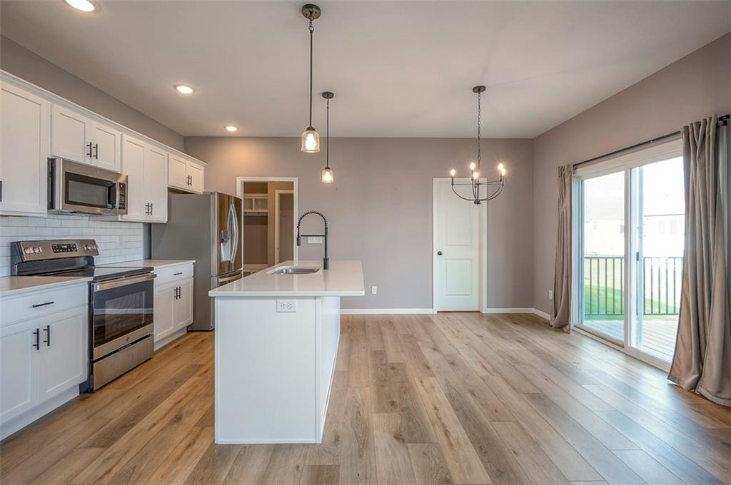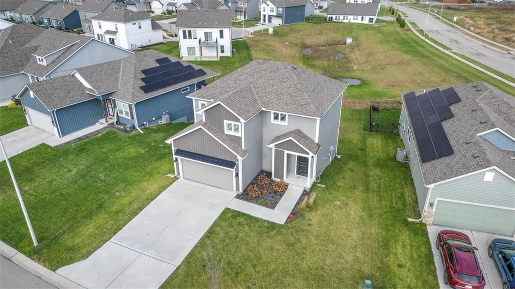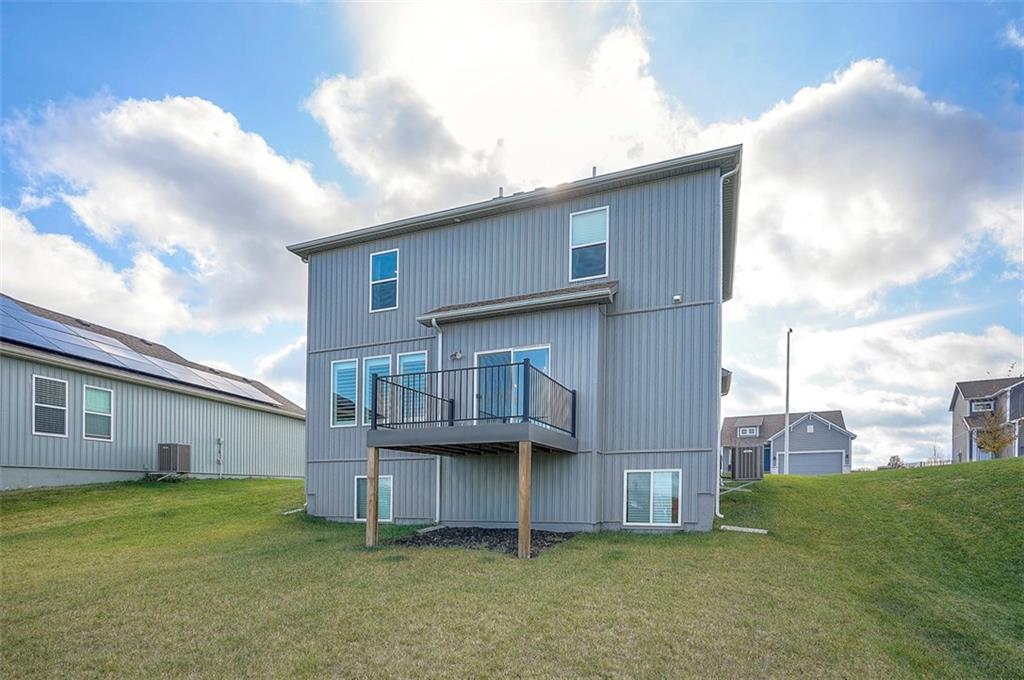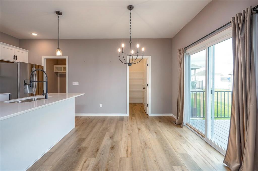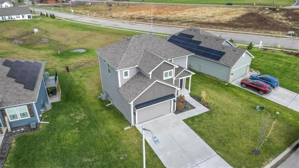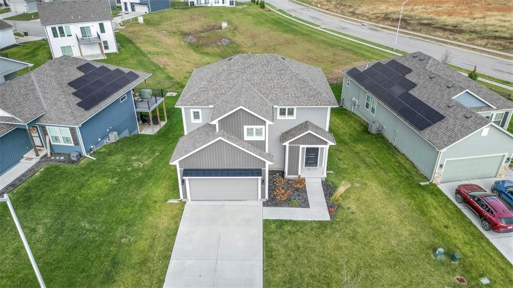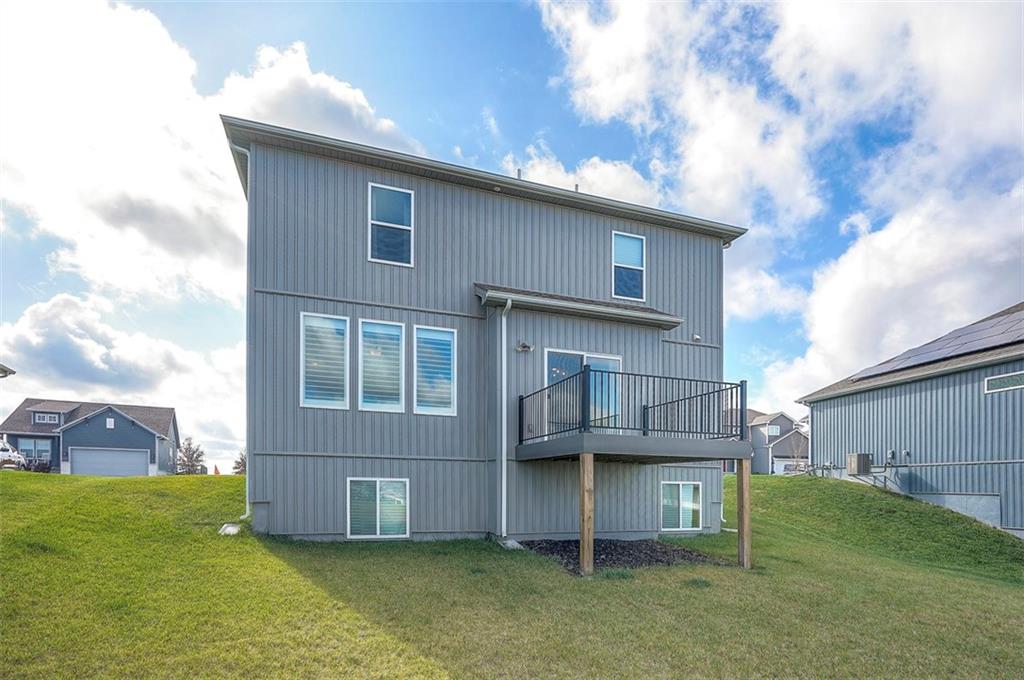 Greenwood / Lees Summit 3 bedroom 2 1/2 bath TWO STORY offers The open-concept main level and is designed for today’s lifestyle. A seamless flow between the living room, kitchen, and dining spaces makes it perfect for both everyday living and entertaining. Upstairs you’ll find three spacious bedrooms, a central laundry room, and a primary suite that feels like a retreat with spacious walk-in closet, private bath, and the space you need to unwind at the end of the day. The unfinished basement comes with two full sized egress window exits and is stubbed for a bathroom and ready for your personal use. A nice above ground North facing deck off the kitchen for morning coffee or evening refreshment opens to a green space ( Neighborhood retention lake ) behind the home that cannot be developed. Enjoy peaceful mornings, quiet evenings, and a sense of space vs a neighbors back yard. This two story is in a vibrant community with a pool, neighborhood events, and highly rated Lee’s Summit schools, this home offers both connection and convenience. Quick highway access to highway 7 and 50 highway makes commuting simple, and custom $2,000 window treatments, towel hangers are already installed, saving you time and expense. Fridge is also included with the house. This home offers style, function, and room to grow!