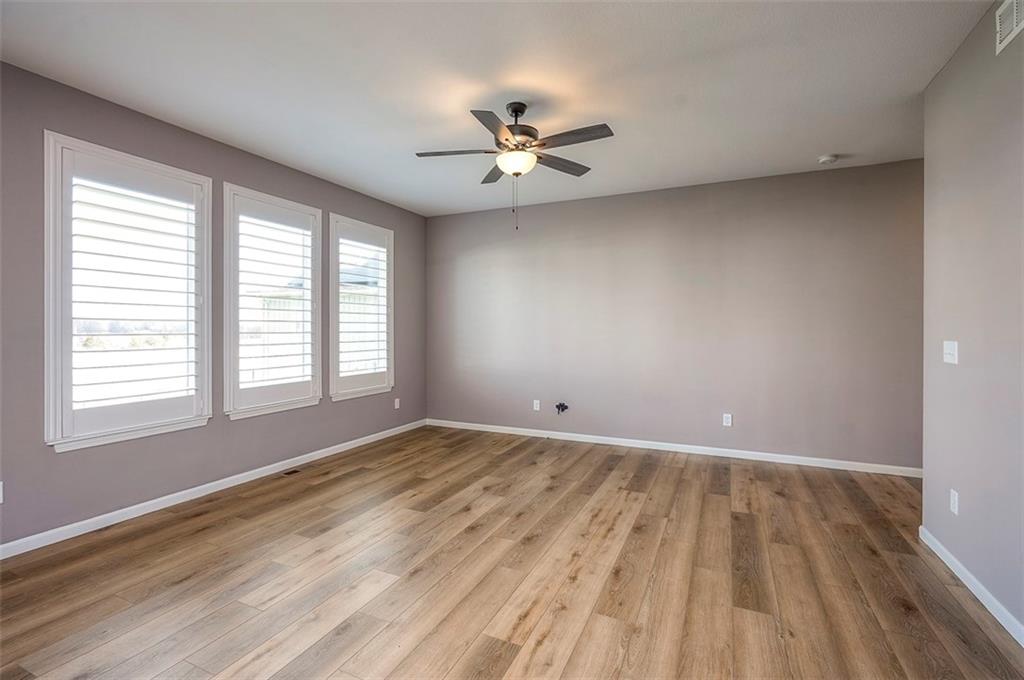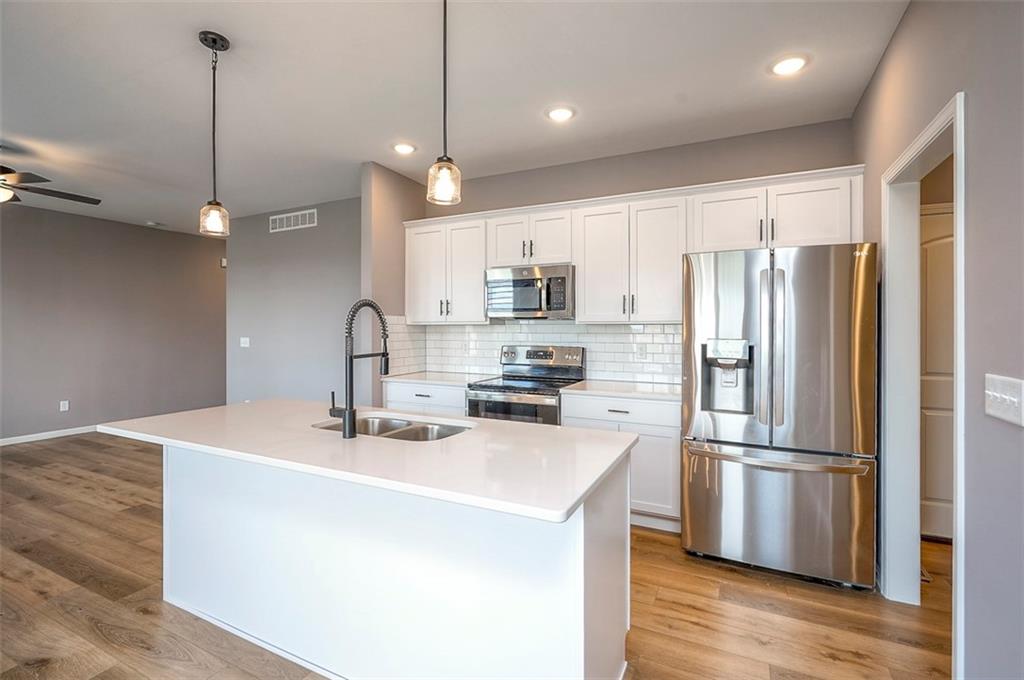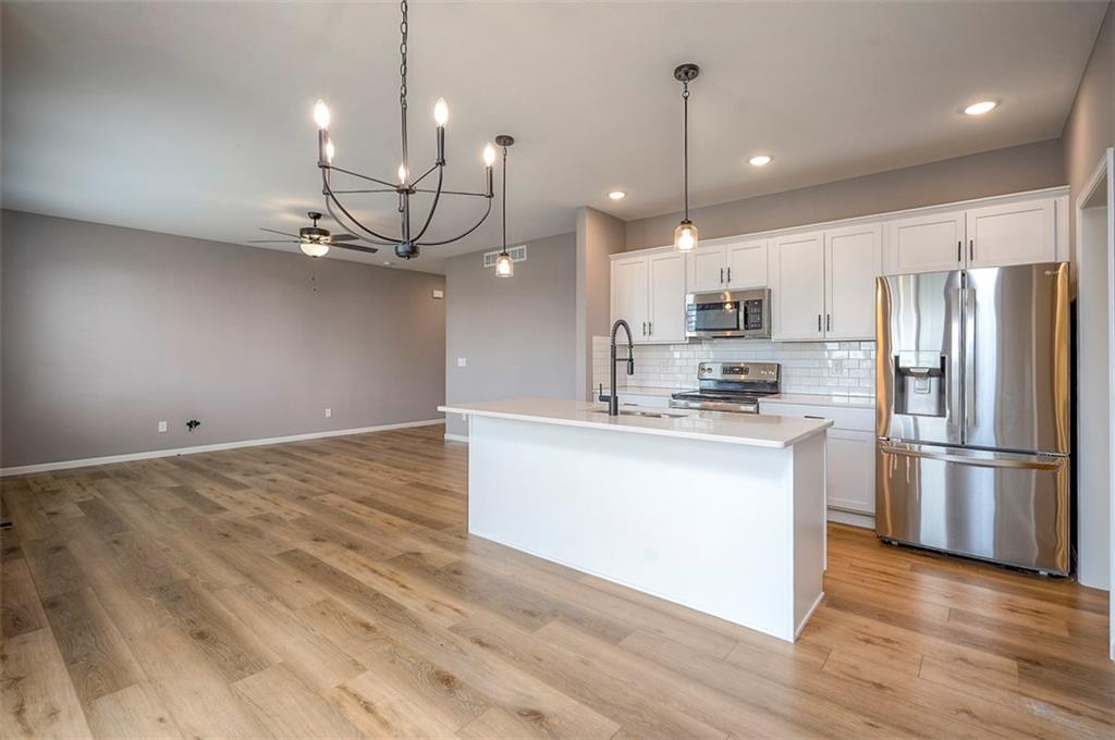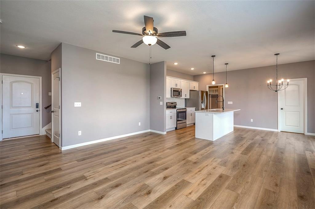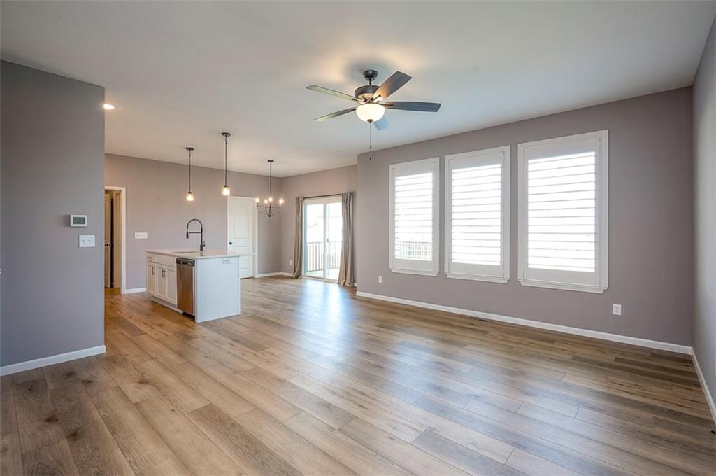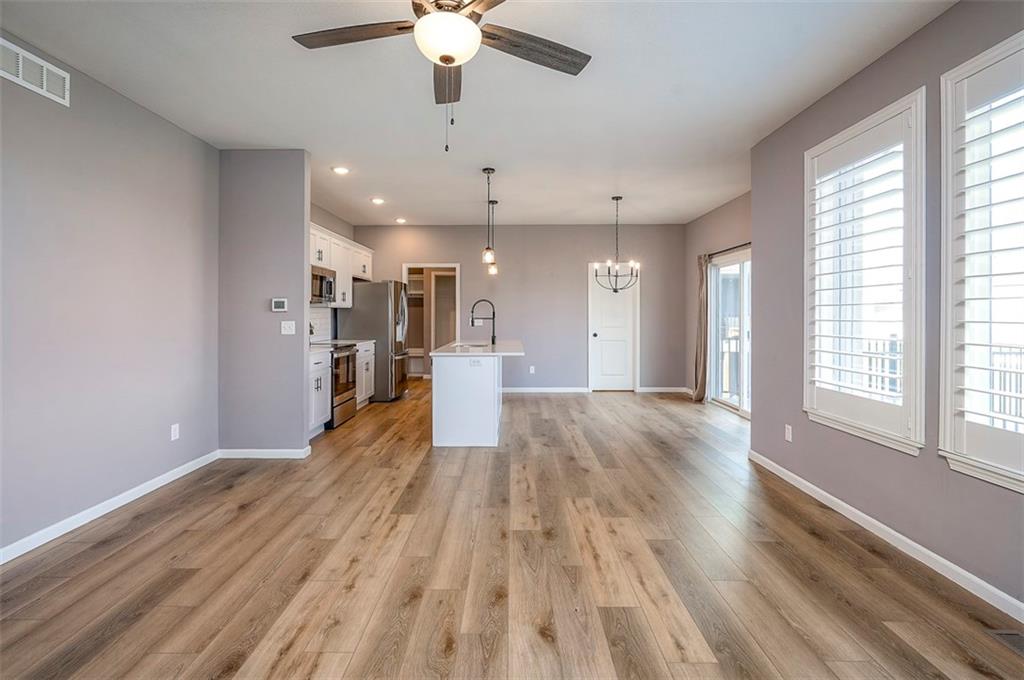 Greenwood / Lees Summit 3 bedroom 2 1/2 bath TWO STORY offers The open-concept main level and is designed for today’s lifestyle. A seamless flow between the living room, kitchen, and dining spaces makes it perfect for both everyday living and entertaining. Upstairs you’ll find three spacious bedrooms, a central laundry room, and a primary suite that feels like a retreat with spacious walk-in closet, private bath, and the space you need to unwind at the end of the day. The unfinished basement comes with two full sized egress window exits and is stubbed for a bathroom and ready for your personal use. A nice above ground North facing deck off the kitchen for morning coffee or evening refreshment opens to a green space ( Neighborhood retention lake ) behind the home that cannot be developed. Enjoy peaceful mornings, quiet evenings, and a sense of space vs a neighbors back yard. This two story is in a vibrant community with a pool, neighborhood events, and highly rated Lee’s Summit schools, this home offers both connection and convenience. Quick highway access to highway 7 and 50 highway makes commuting simple, and custom $2,000 window treatments, towel hangers are already installed, saving you time and expense. Fridge is also included with the house. This home offers style, function, and room to grow!