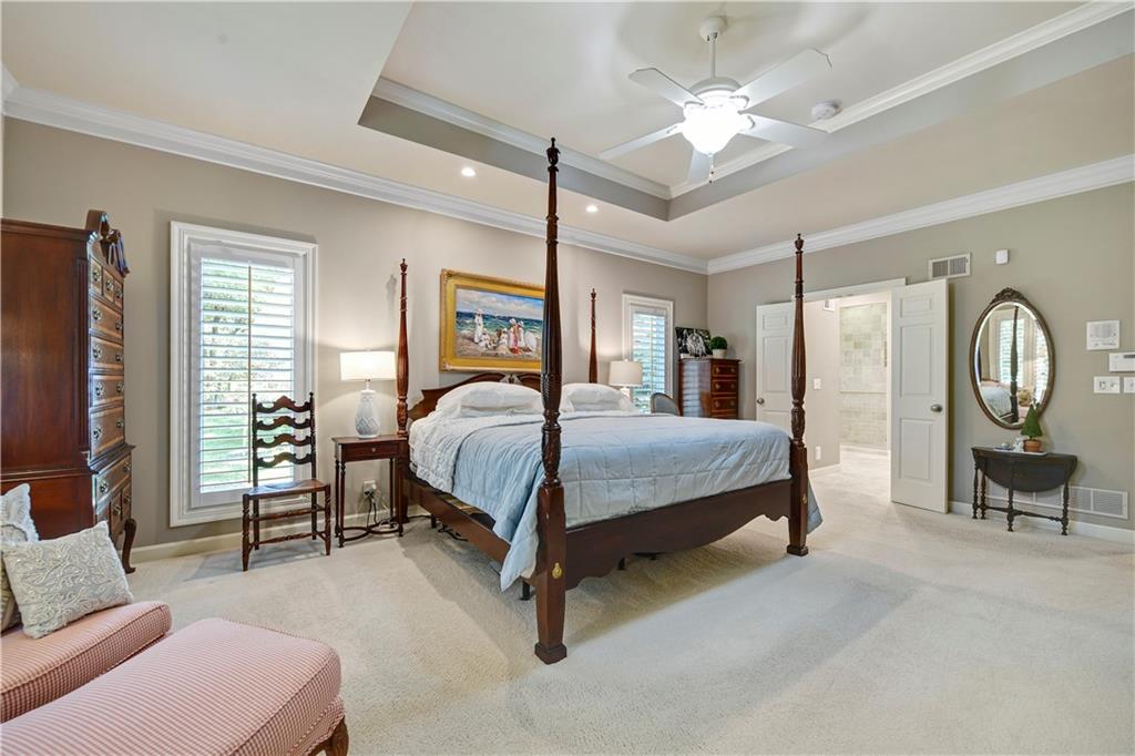 Nestled on a wooded cul-de-sac lot in the highly sought-after Cedar Creek community, this stunning 1.5-story retreat offers 5 bedrooms, 3 full baths, and 2 half baths—delivering the ultimate golf course lifestyle. The soaring 16-foot living room welcomes you with a grand stone fireplace, flanked by French doors that open to a cozy four-seasons room—an ideal spot for morning coffee while you watch deer and other wildlife wander by. The gourmet kitchen is a chef’s dream, featuring a spacious island, premium appliances, and a reverse osmosis water filtration system. Gather in the warm hearth room with its second fireplace and serene backyard views, or enjoy the charming breakfast nook that leads out to a maintenance-free deck. Head down the stairs to the lower patio and take a peaceful stroll around the manicured grounds—the golf course is just steps away. Back on the main floor, the primary suite offers a spa-like bath and a custom walk-in closet with convenient washer/dryer hookups. Upstairs, pristine new carpet guides you to three generously sized bedrooms, each with a walk-in closet and access to the versatile loft. Space, storage, and comfort abound. Complete your tour in the finished daylight lower level, designed for entertaining with a spacious rec room, full bar, workout area, and a private fifth bedroom. This home has been maintained with exceptional care—prepare to be impressed. Living in Cedar Creek means enjoying world-class amenities, including pools, a clubhouse, scenic trails, a 65-acre lake, and indoor courts for basketball, volleyball, and pickleball. Plus, you’ll have the opportunity to join one of the Midwest’s finest private golf clubs. Don’t miss this rare opportunity to own a remarkable home bordering one of Kansas City’s most picturesque golf courses.