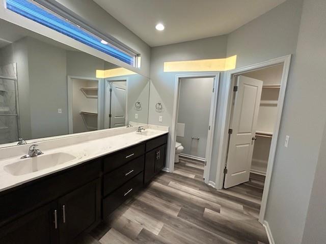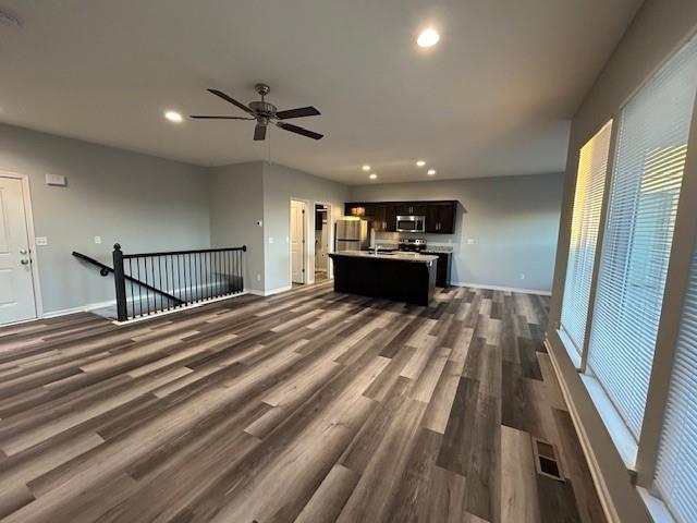 Open-concept Reverse 1.5-story home, showcasing luxury vinyl plank flooring throughout and a fantastic Living Room with floor-to-ceiling windows flooding the space with natural light. Featuring 4 spacious bedrooms (2 on the main level) and high ceilings, this home offers a grand primary suite with a massive double vanity, walk-in closet, shower and private water closet. The Kitchen, complete with a large island, walk-in pantry, and adjacent dining area, flows to a partially covered deck—perfect for entertaining. The finished basement boasts a expansive Rec Room with daylight windows, 2 large bedrooms both featuring walk-in closets, a full bath, and abundant storage.