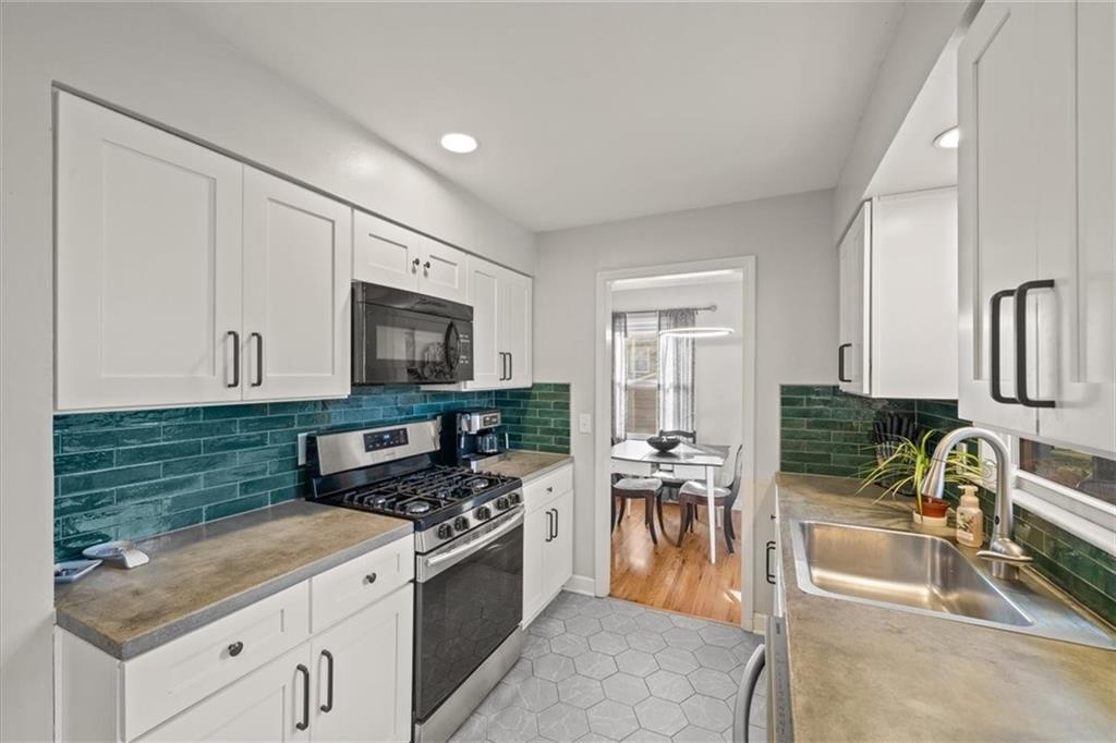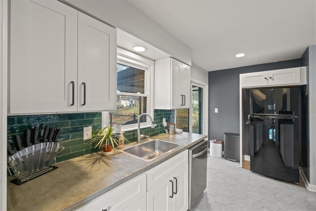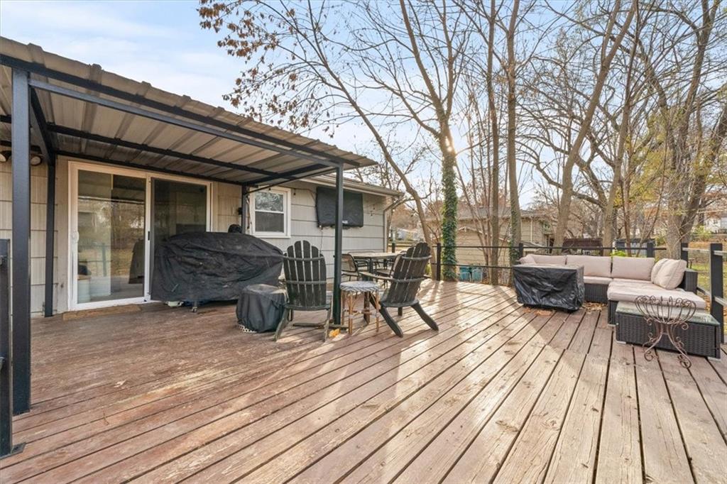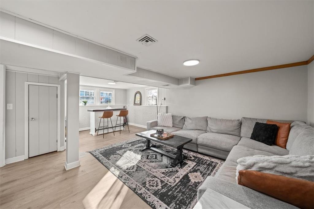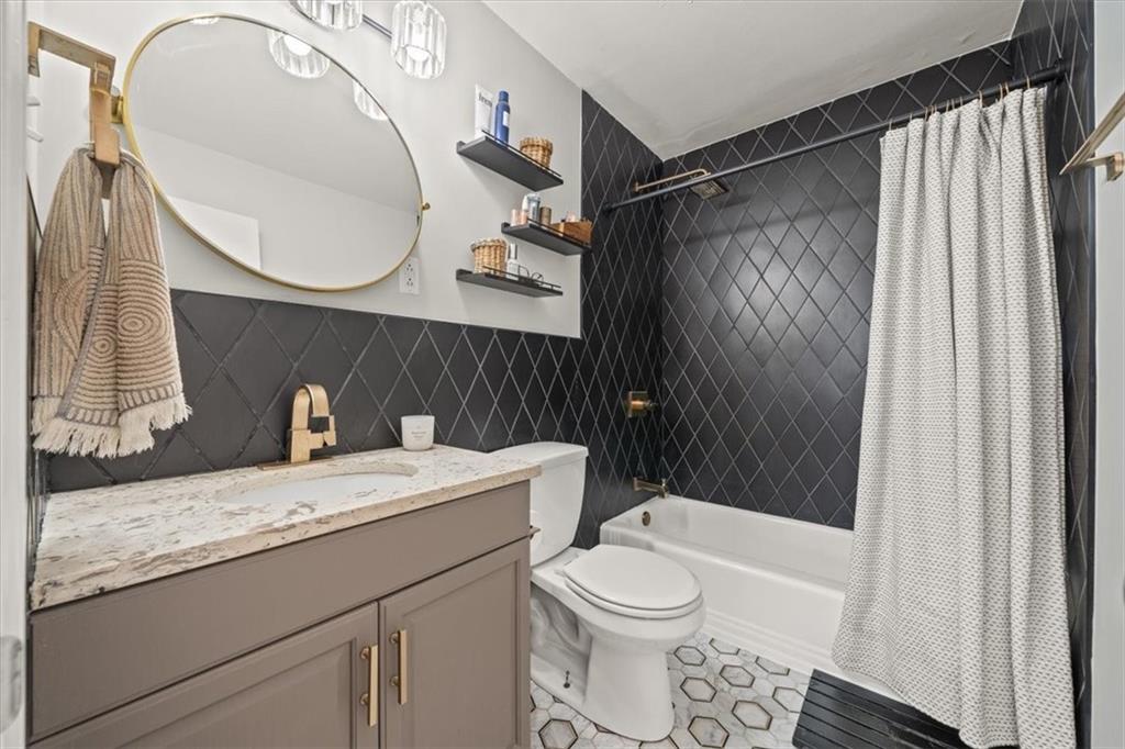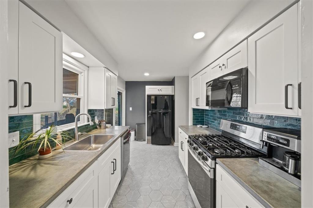 Exciting updates and truly ready for you to move right in! This home shines with a stunning, updated kitchen featuring new white soft-close cabinets, concrete countertops, a stylish tile backsplash, and tile floor, plus a full suite of newer appliances including a gas stove, microwave, dishwasher, and a new sink/faucet, complemented by a convenient sliding back door. Elegance abounds on the main floor where newly refinished wood floors gleam throughout the living areas and all three bedrooms. The main bathroom is also updated, showcasing a quartz countertop, refinished tub, and new shower backsplash. Downstairs, the basement offers even more space with a versatile rec room, a convenient half bath, and newer LVP flooring. Enjoy your private outdoor oasis with a large deck and a fully fenced backyard. Peace of mind is provided by durable vinyl windows and newer mechanicals (Furnace installed in 2022, A/C in 2015). Don't miss this move-in ready gem—schedule your showing today!
