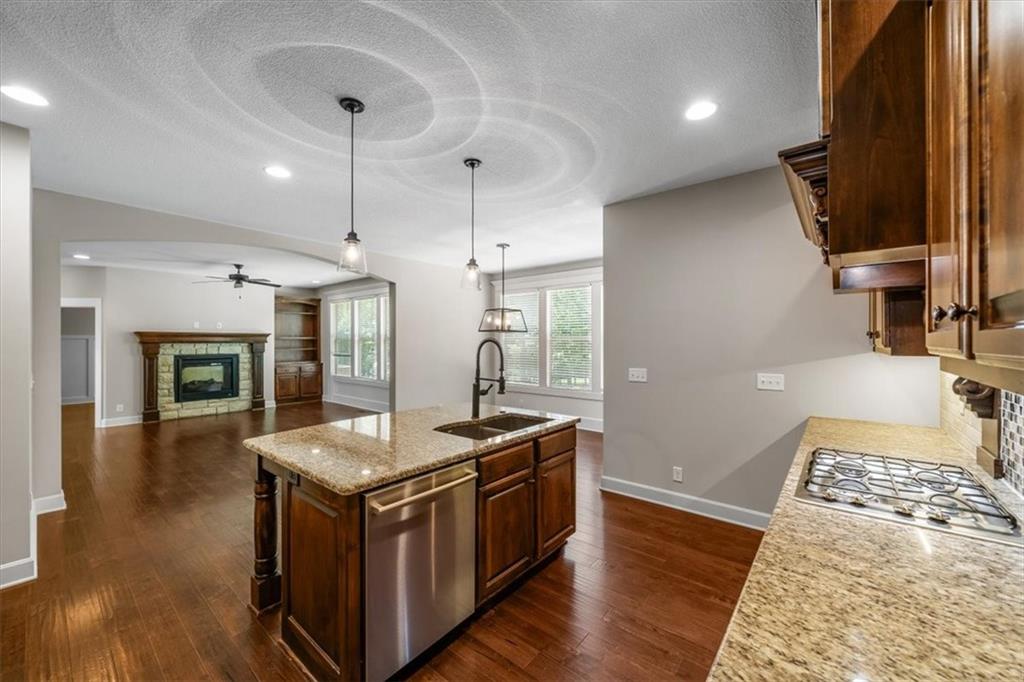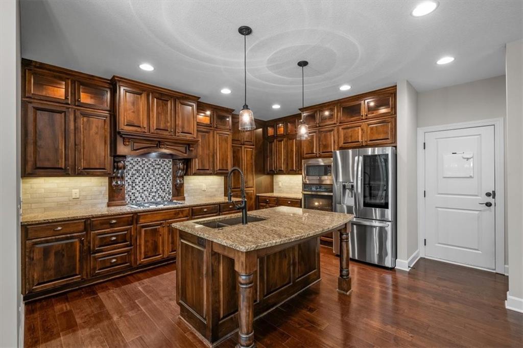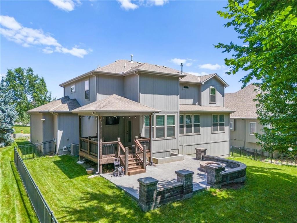 Welcome to 9154 Shady Bend Road—better than new construction and newly refreshed from top to bottom. Located at the top of a quiet cul-de-sac in Lenexa’s desirable Arbor Lake community, this Reilly-built two-story offers a rare combination you won’t find in the brand-new builds: fresh interior paint throughout, all-new carpet, a fully finished basement, a fenced yard, and a beautifully upgraded outdoor living space. Set on one of the neighborhood’s premium lots, the home features mature trees, wrought-iron fencing, and peaceful, private views. Inside, you’ll find four spacious bedrooms, four full baths plus a main-level half bath, and a finished lower level with a 4th full bath—ideal for guests, teens, in-laws, or multigenerational living. The main level showcases gleaming hardwoods, fresh paint, and thoughtful upgrades. The gourmet kitchen includes rich cabinetry, gas cooktop, tile backsplash, and a butler’s pantry. The great room centers around a striking stone fireplace with a see-thru view into the study, which features built-ins and a second fireplace. Upstairs, the refreshed primary suite is your personal retreat with a soaking tub and a spa-style walk-in shower with dual heads. All bathrooms throughout the home feature tiled floors and tiled showers for elevated durability and style. Outdoor living shines here: enjoy the covered deck with mounted TV, the extended stamped-concrete patio, and the custom fire pit—an entertainer’s dream. The builder-installed dry basement system and EV-ready wiring add peace of mind and modern convenience. Arbor Lake residents enjoy walking trails, a neighborhood pool, playground, and a scenic lake with fountain—just a short stroll away. Close to St. James Academy, great schools, shopping, and highways. Move-in ready, freshly updated, and offering more value than the new builds—come see why this home stands out.