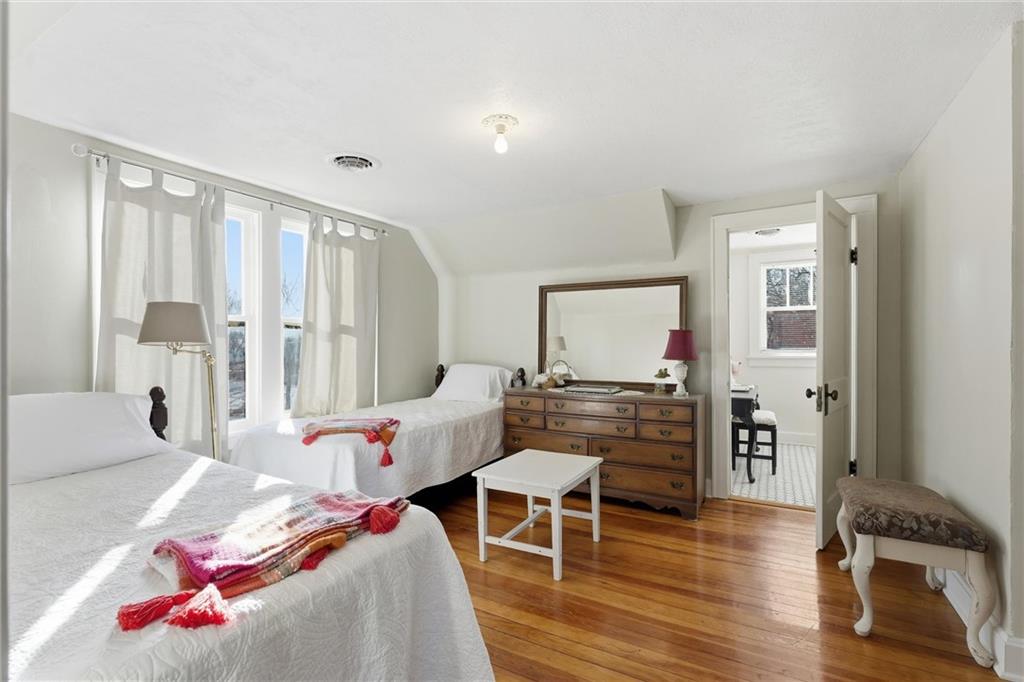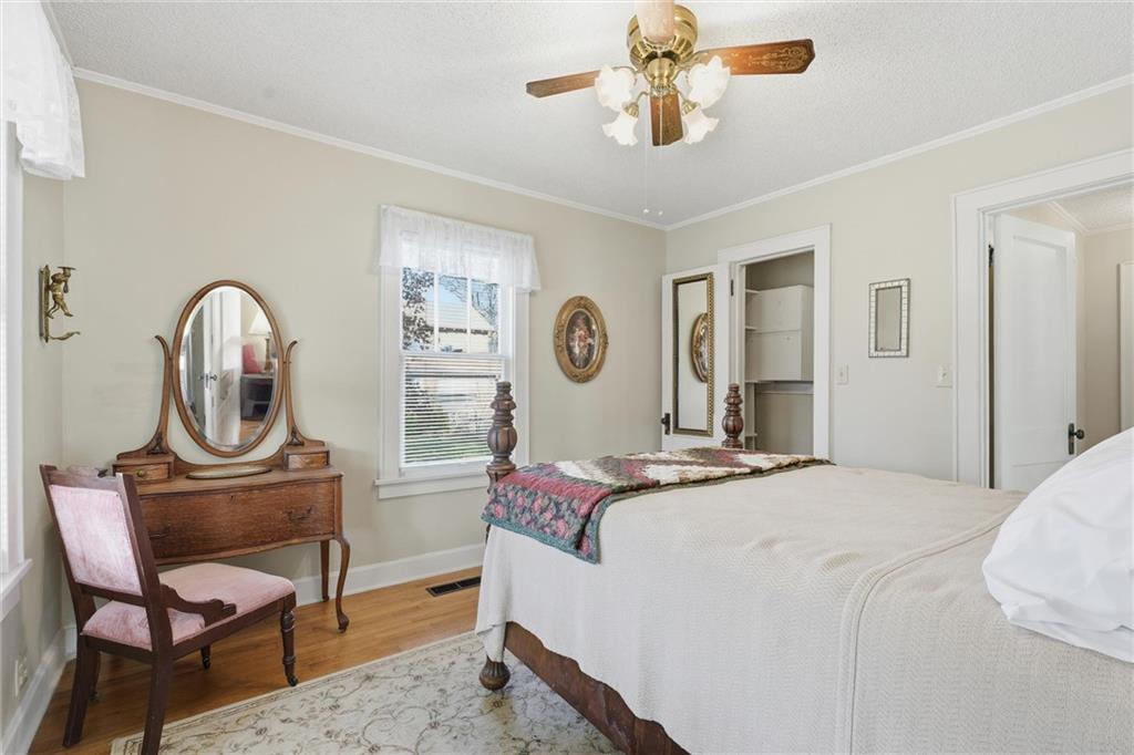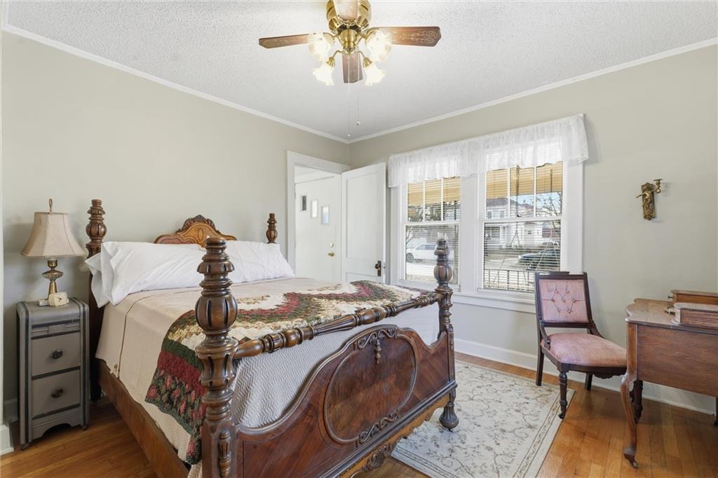 Step into this true American Bungalow, thought to be a 1921 Sears & Roebuck Vallonia, offering 1,974 sq ft, 4 bedrooms, and 2 bathrooms in a beautifully preserved historic setting. Nestled on a quiet, tree-lined street, this home features gleaming oak floors on the main level, pine floors upstairs, crown molding, and the classic architectural details that make these homes so special. The home comes fully furnished—ideal for moving right in or continuing as an Airbnb—with the exception of the kitchen table and chairs. The bright dining room flows into a spacious living room through a wide archway, and two main-floor bedrooms share a full tile bath. A versatile multipurpose sunroom off the back entry offers windows on three sides, pantry and laundry space, and plenty of room for everyday living. Upstairs, two generous bedrooms and a charming bath with a clawfoot tub create a private retreat, complete with its own heat pump. The basement includes a partially finished family room along with updated electrical and a newer water line. Outdoor highlights include a welcoming covered front porch, a covered back patio, and a 20x30 detached garage—an excellent blank slate to create your ideal workshop or mancave. A rare blend of space, character, furnishings, and opportunity—ready for its next owner to enjoy.