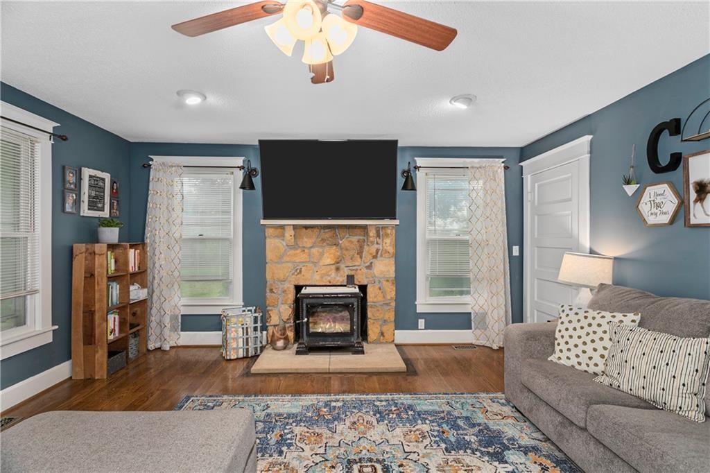 Bring your animals and don’t miss this rare farmhouse retreat! This charming 2-story home offers the perfect blend of peaceful country living and quick city convenience, just 3 miles to I-70, 15 miles to Lawrence, and only 20 minutes from shopping, dining, and entertainment at the Legends. Set on nearly 6 acres of beautiful Kansas countryside, the property includes multiple outbuildings with 6 total garage spaces, 3 with electricity perfect for hobbyists, storage, or livestock. The acreage is fully fenced with gated access to the open pasture. Inside, you’ll enjoy the main-floor primary bedroom, gorgeous updated bathrooms, and hardwood floors throughout the main level. The spacious kitchen and breakfast area make gathering easy, while the huge mudroom with laundry and office/flex space adds everyday convenience. Upstairs, oversized bedrooms and unique historic charm make this home truly one-of-a-kind. Recent updates include new HVAC and a newer roof (2020), along with easy-maintenance siding. The welcoming covered front porch is perfect for morning coffee and quiet views. Properties like this rarely come available, a historic farmhouse with space, charm, and endless possibilities!