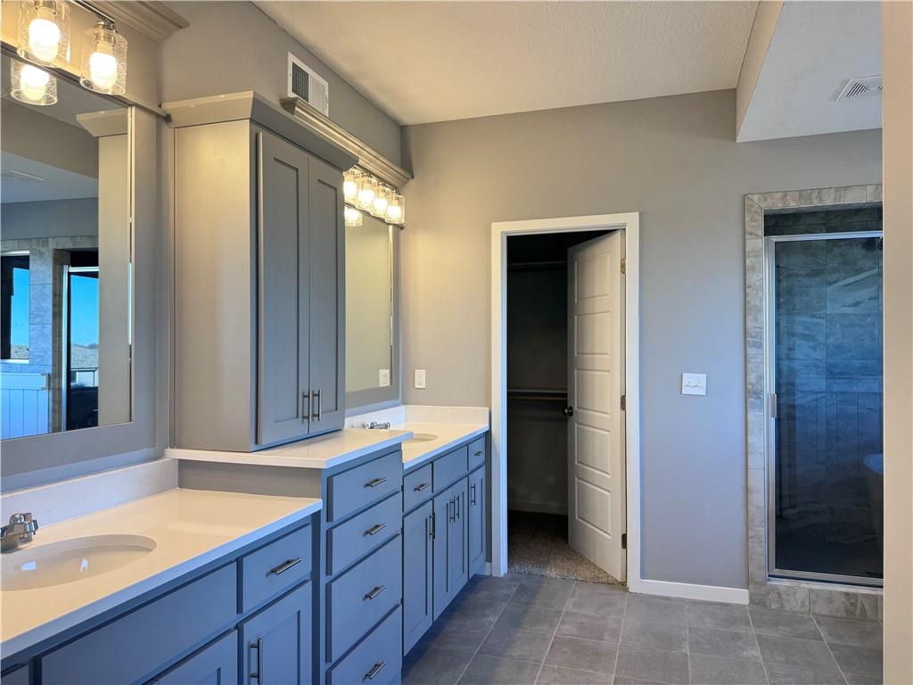 This stunning Niko new construction home, built by Prieb Homes, is located in the highly sought-after Woodland Hills community in Olathe. The location offers easy access to highways and shopping, making it a convenient place to call home. The Niko plan is a spacious 5 bedroom, 4 bath home, perfect for families or those who enjoy having plenty of space. As you enter the home, you'll be greeted by a spectacular two-story entry that creates a grand impression. The open floorplan offers ample space to entertain and make memories with loved ones. The great room features a beautiful stack stone fireplace that adds a cozy touch to the space. The kitchen is sure to impress with its CL cabinet package, complete with soft close drawers and doors, a hood, apron sink, and built-in microwave. The large center island is perfect for meal prep and hosting guests, while the painted cabinets and walk-in pantry add both beauty and practicality. The breakfast room overlooks a covered patio, creating a perfect space for outdoor relaxation and enjoyment. The main floor bedroom is perfect for guests, a playroom, or a home office, providing flexibility and versatility to the home. Upstairs, the master suite is a true retreat, featuring a spa-like bath with a freestanding tub and a large walk-in closet. The laundry room is conveniently located next to the master suite, making laundry day a breeze. The home features beautiful stone accents and today's colors, creating a modern and stylish feel. The photos are of a previously completed sold Niko plan, some features and selections may not be included in this particular home.