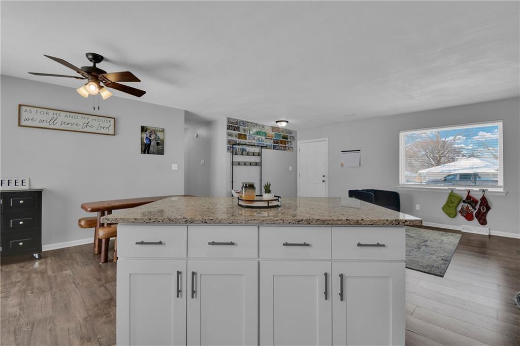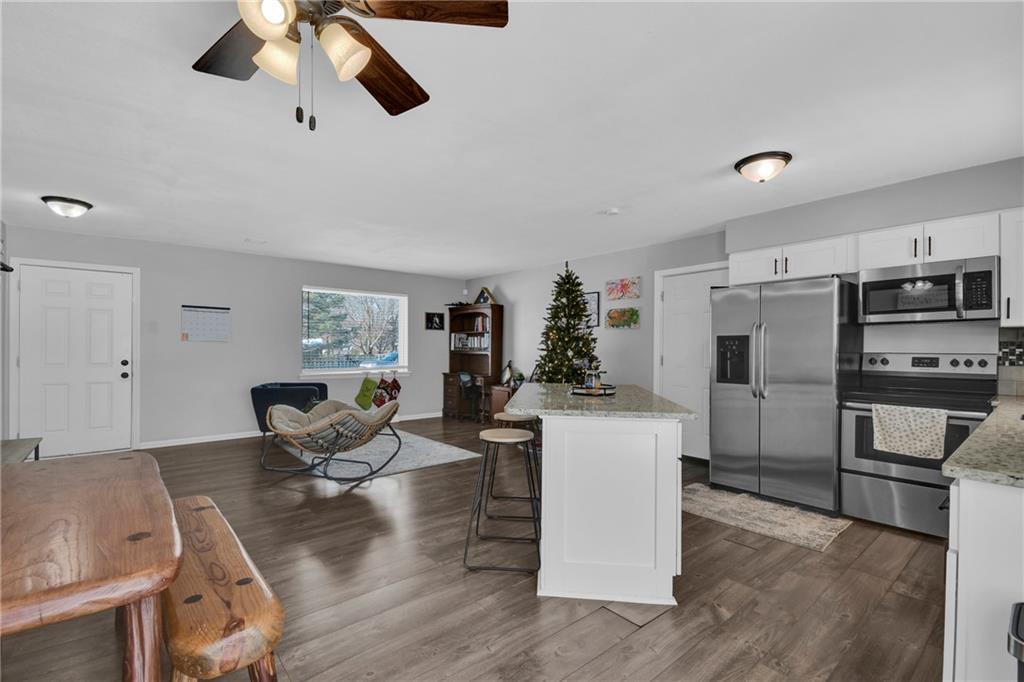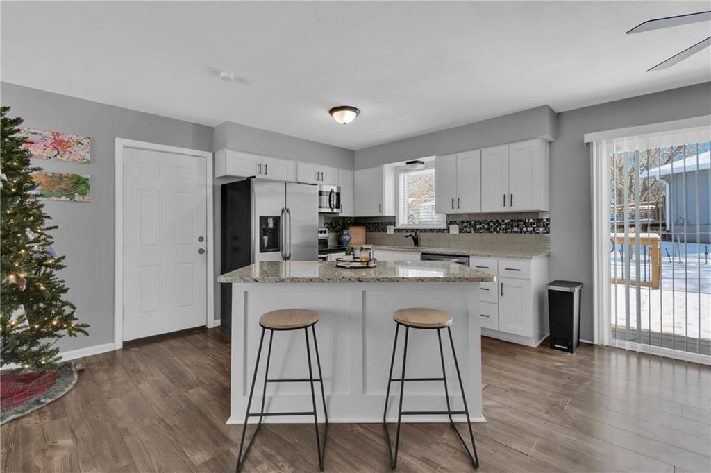 Welcome to this well-finished 4-bed, 2-bath ranch set on a generous corner lot in a prime Lee’s Summit location. The open-concept living and kitchen area features granite countertops, stainless steel appliances, and natural light that fills the main level beautifully. Three comfortable bedrooms and a modernized full bath complete the upstairs. The basement extension offers a great entertainment space, a refreshed full bath with contemporary finishes, and a versatile fourth bedroom perfect for guests, a home office, or a fitness room. With a functional layout, ample storage, and move-in-ready appeal, this home blends comfort and style in all the right ways. Take a look at this one, it's easy to love.