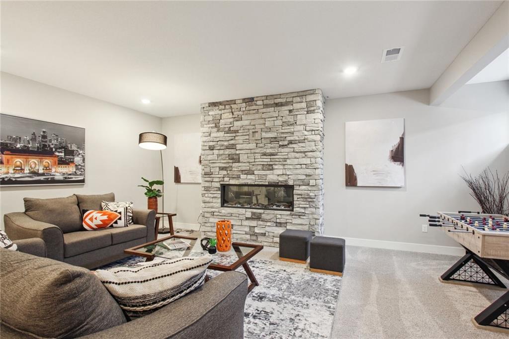 UNDER CONSTRUCTION with a completion date of May/June 2026. There is still time to visit the Design Center and make design choices, if desired! Introducing the popular Windsor reverse-ranch by Inspired Homes! This fantastic Reverse 1.5 Story now boasts over 3,500 SQFT and is the spacious reverse-ranch that you have been looking for! Upon entering the home, you will be immediately impressed by the wide grand entry, leading into a spacious open concept living room and kitchen with 12 ft ceilings and 8' doors throughout the main level. The great room features wall-to-wall windows, a stone stack fireplace with paired built-in bookcases, while the kitchen is highlighted by a 9'x5' island, built-in GE appliances, high-end quartz countertops, custom soft-closed cabinetry, and a huge pantry with hard-surface, custom shelving. Also on the main level is the giant primary bedroom with a luxurious bathroom, complete with a soaker tub and a spacious dual-headed shower. Directly adjacent is a large walk-in closet with additional pull-down bars and the laundry room with an upgraded sink. In the basement, enjoy a spacious rec area with an additional electric fireplace and a full wet bar, as well as three spare bedrooms and two full baths, creating the perfect environment for family or guests to have their own space. Inspired Homes also includes extra deep garages, 8’ garage & front doors, irrigation systems, garage openers, low-e Pella windows & doors, custom wood cabinetry throughout, tray ceilings, stylish accent walls & ceiling trim, and so much more! In addition, the community offers a premier amenities package, including a zero-entry pool and sun cabanas, a large "tot-lot" playground and gaga ball pit, pickle ball courts, basketball and volleyball courts, local walking trails, and expanses of green space to enjoy. Pool and playground are in progress and will be open Spring 2026! Photos are of a previous home/model.