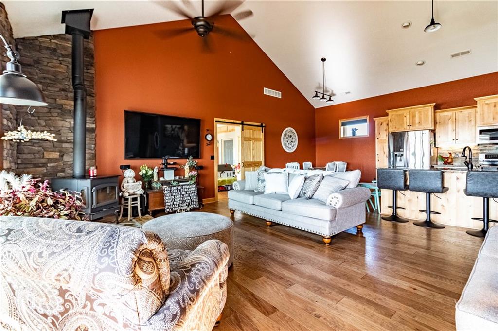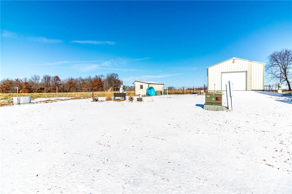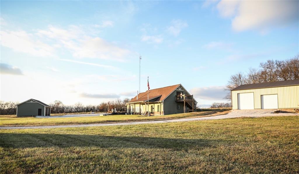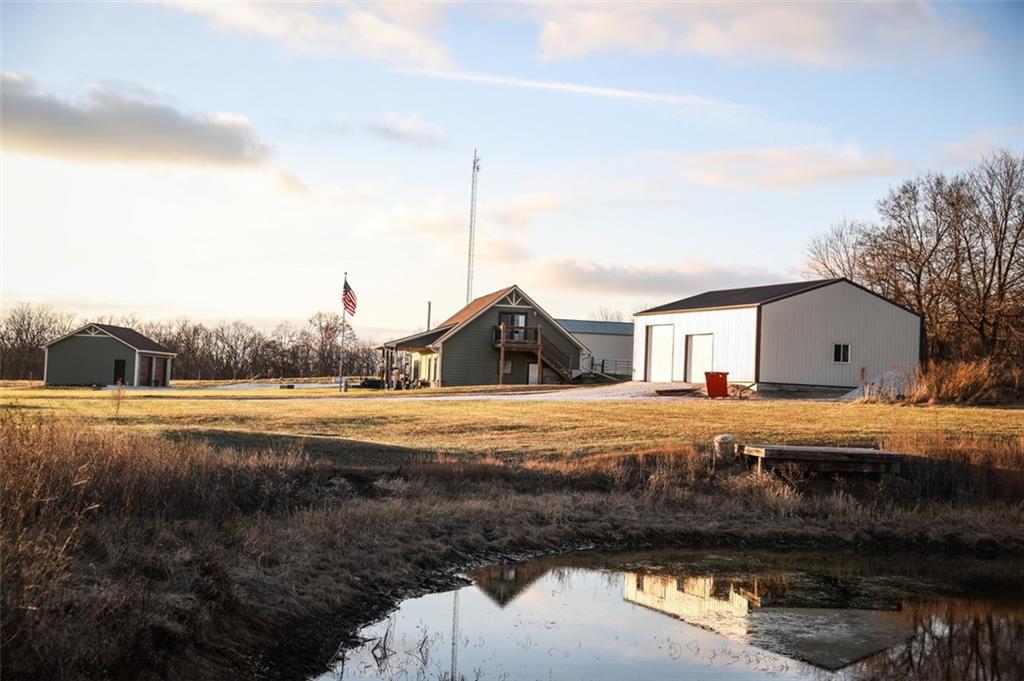 Welcome to this beautifully custom built, partial earth contact home with 3-bed, 3.5-bathrooms filled with plenty of upgrades. Perfectly situated on 12 acres in Windsor, MO., this stunning residence boasts a variety of interior and exterior enhancements, offering modern comfort with timeless charm. Step inside to discover an inviting open floor plan with spacious ceilings throughout. The kitchen features granite countertops, custom cabinetry, a walk-in pantry, and stainless steel appliances, making it a perfect space for cooking and entertaining. The spacious living/dining area is filled with natural light, creating a warm and welcoming atmosphere with beautiful engineered hardwood flooring. The family room off the living area is so versatile, ideal for an office, mother in-law suite, or as a gameroom and sure to captivate your guests with endless entertainment. The master suite offers a private retreat with a spa-like en’suite bathroom featuring a walk-in shower, jacuzzi tub, and a generous walk-in closet. There is a laundry room and an additional bedroom on the main level. Upstairs you will find a sitting room, the 3rd bedroom, and another full bathroom. This bedroom walks out to a 2nd story deck. All bathrooms are custom tiled to enhance the theme throughout. Outside, you’ll find a wide-open yard, a covered front porch, and an open patio for outdoor entertaining or relaxing. Fenced pasture allows for your livestock of choice. The property also features a small pond and dock. Exterior home upgrades include a 50 year composition roof, James Hardie fiber cement siding, and energy-efficient fiberglass/wood windows, ensuring durability and curb appeal. Matching the main home is a 2 car detached garage added within the last 4 years. Also included is a 20x30 workshop with concrete floor and a 30x40 barn for all your equipment - both with ample electricity! Nestled back in a quiet part of the property, well off the main road, this home is just minutes from Whiteman AFB.