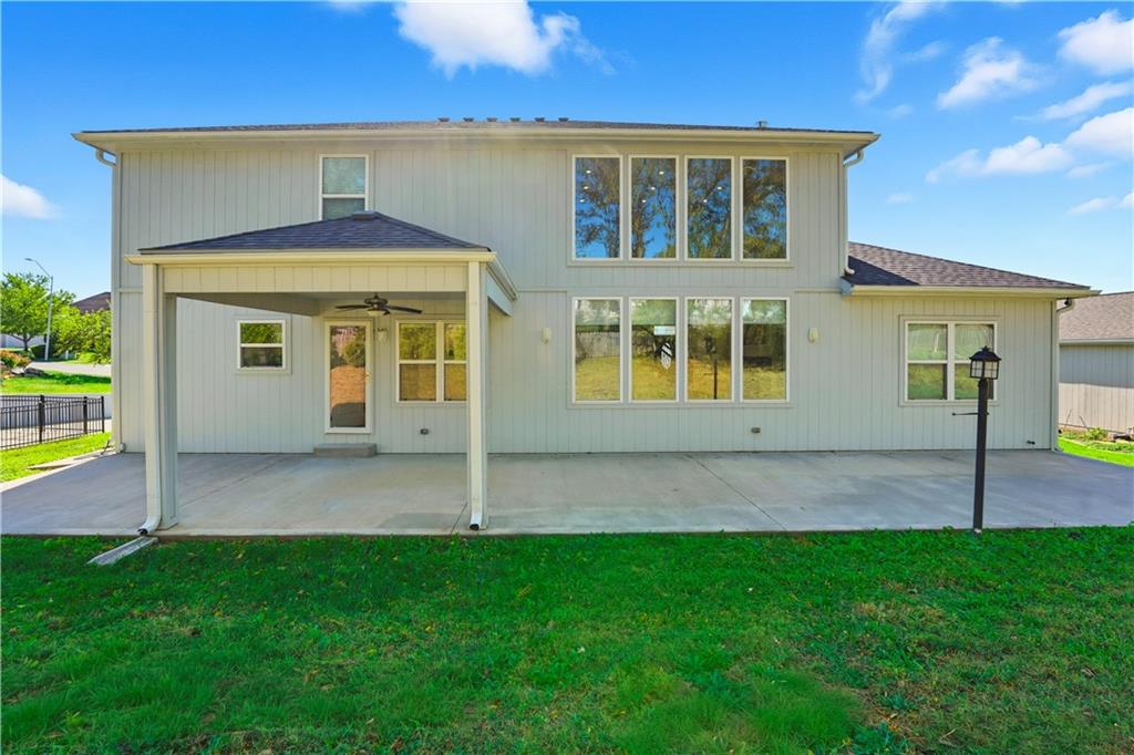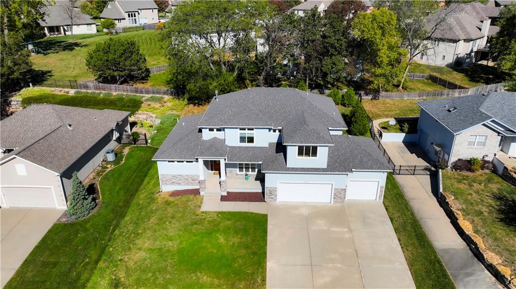 $40,000 INSTANT EQUITY! PRICED $40,000 BELOW LAST YEAR'S APPRAISAL! Custom one-owner home in Blue Springs Schools offering exceptional craftsmanship and thoughtful design throughout. From the moment you arrive, the quality is evident—beginning with the striking mahogany front door and continuing inside with porcelain tile flooring, elegant finishes, and an open layout designed for comfort and entertaining. The main level features dramatic 17' two-story windows that flood the great room with natural light, creating an elevated and spacious atmosphere. A convenient glass-door flex room serves perfectly as an office, playroom, or hobby space.The kitchen is equipped with Energy Star appliances, including an induction cooktop, built-in microwave/oven, and dishwasher, offering both efficiency and modern style. Upstairs, all four bedrooms feature hardwood floors, walk-in closets, and abundant natural light. Additional highlights include interior and exterior recessed lighting, elegant two-level window frames, a full security system with camera surveillance, and a spacious 3-car garage. The backyard and patio provide excellent space for relaxing or entertaining. Meticulous one-owner care and quality construction make this home truly move-in ready. A built-in Bluetooth ceiling sound system offers optional ambience for gatherings or everyday enjoyment and blends seamlessly into the home’s design. The lower level adds even more potential! Bathroom plumbing stubbed in, and an egress window, giving you a substantial head start for future expansion. This unfinished space is ready to be customized to fit your needs—whether a theater, gym, recreation room, bedroom, or additional living area. Available for fast or delayed occupancy. Hurry in!