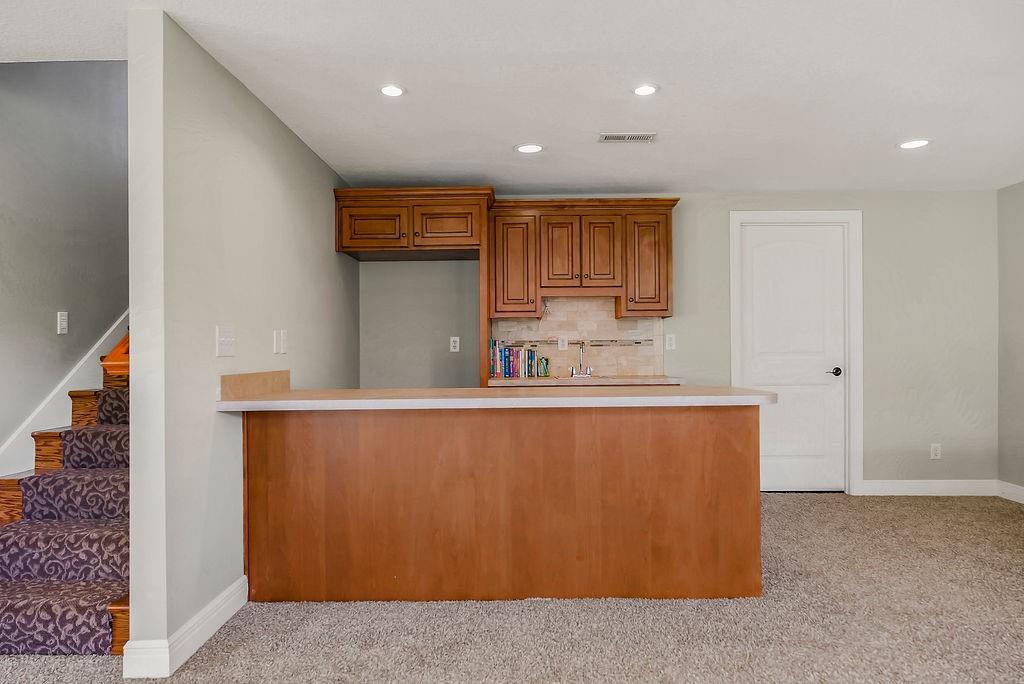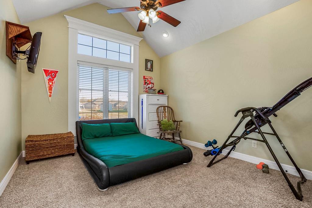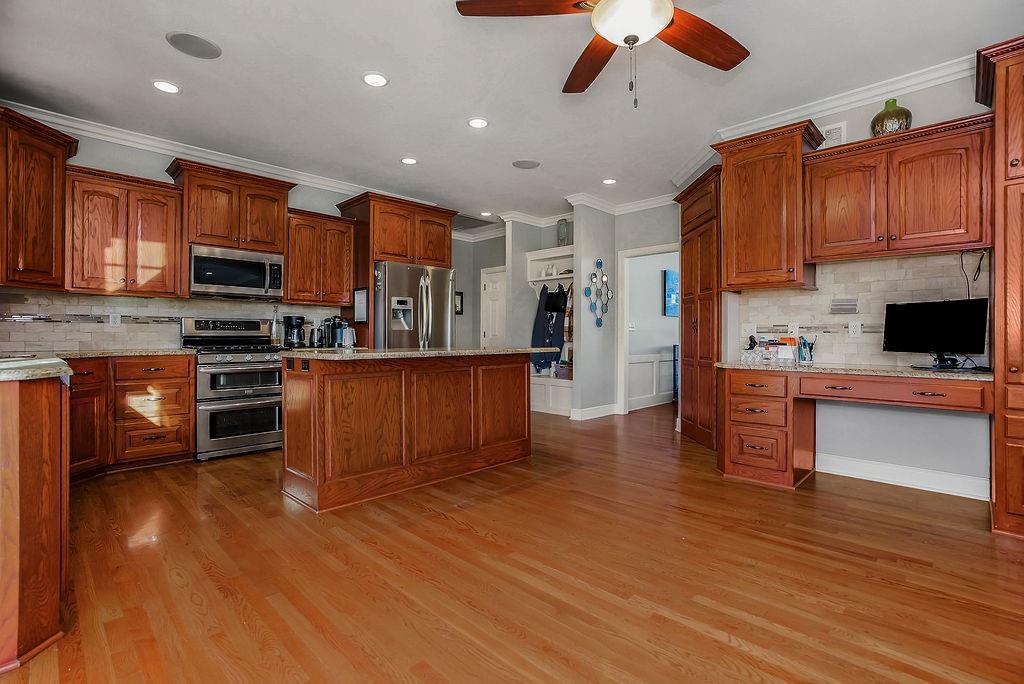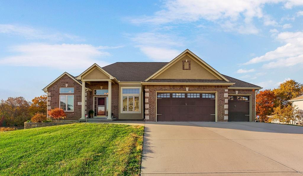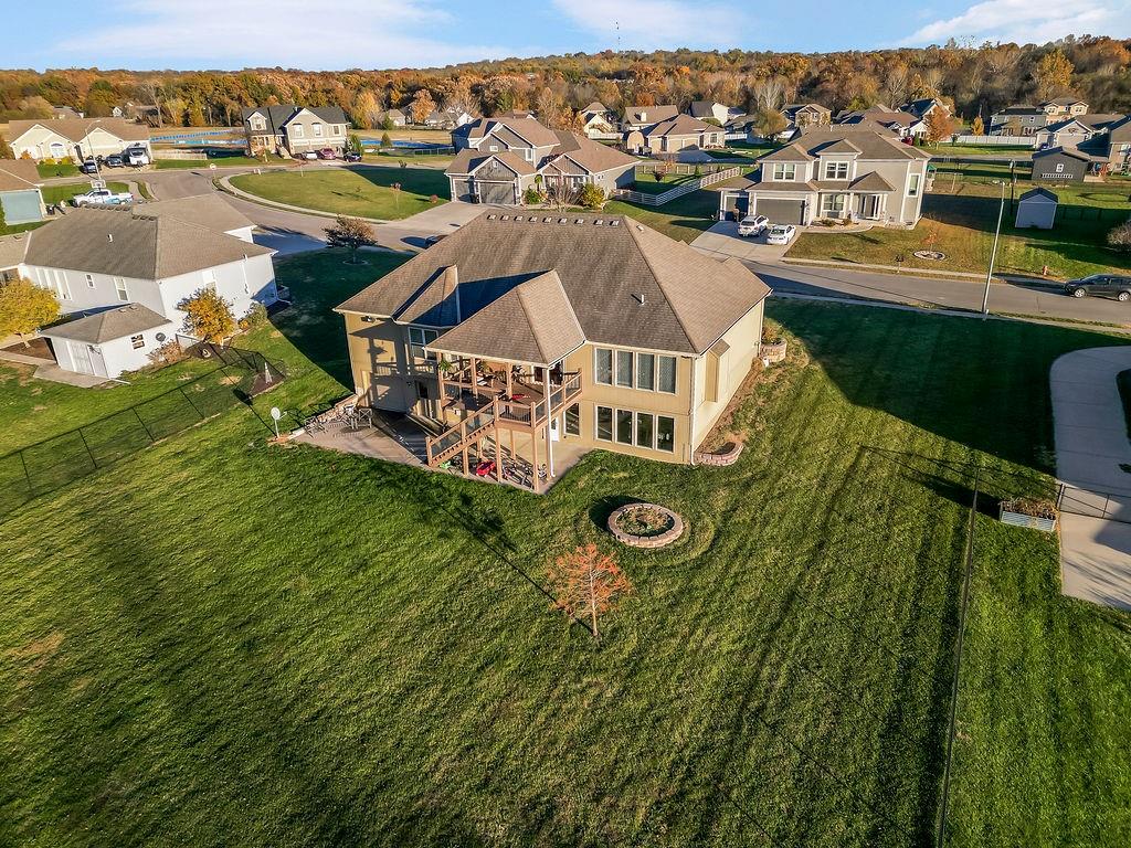 Stunning Reverse Ranch on Nearly an Acre in South Pleasant Hill. Experience peaceful, country-style living in a beautifully maintained neighborhood just minutes from 7 Highway. This inviting reverse ranch offers an open-concept kitchen and living area featuring an island, granite countertops, stained cabinetry, and a gas range. The spacious yet cozy living room includes built-ins for storage and display, along with a gas fireplace. Expansive windows throughout the home fill each space with natural light. A formal dining room, main-level laundry, and generous primary suite provide exceptional comfort and convenience. The luxurious ensuite features dual vanities, a whirlpool tub, and an oversized walk-in closet. The finished walkout lower level is perfect for entertaining, complete with a large family room, kitchenette/bar, and a third full bathroom. Parking is abundant with a three-car main-level garage plus an additional rear bonus garage—ideal for a workshop, tools, or extra storage. Relax outdoors on the covered deck overlooking the expansive backyard that backs to a serene forested area. The large lot and quiet street offer ample room for recreation and play. Additional unfinished storage space adds even more flexibility. No HOA!