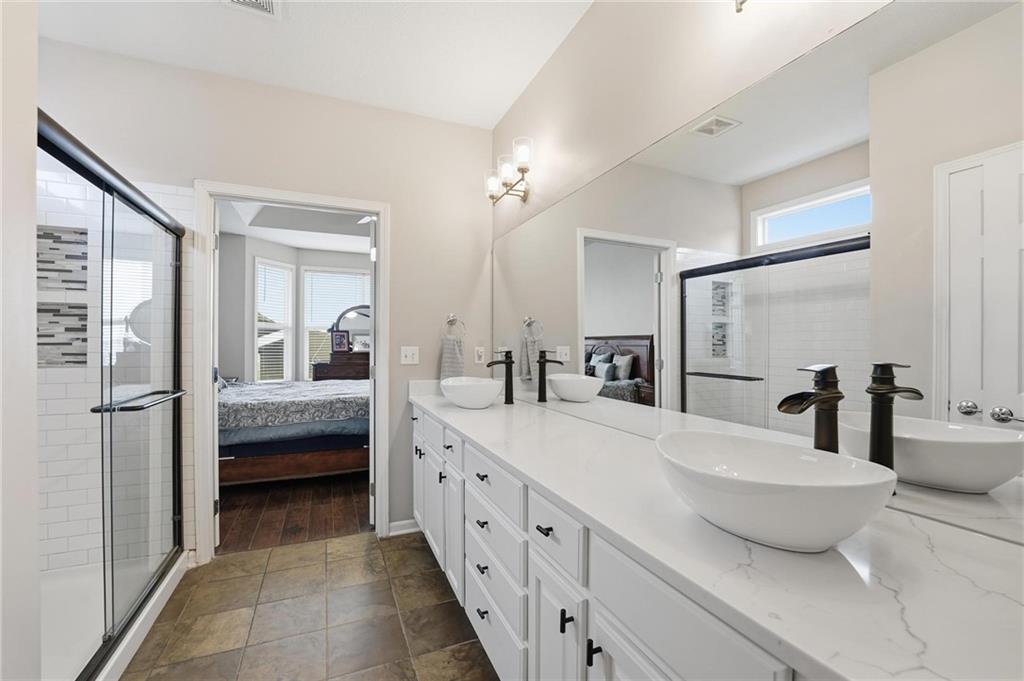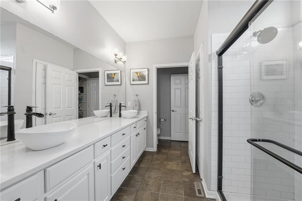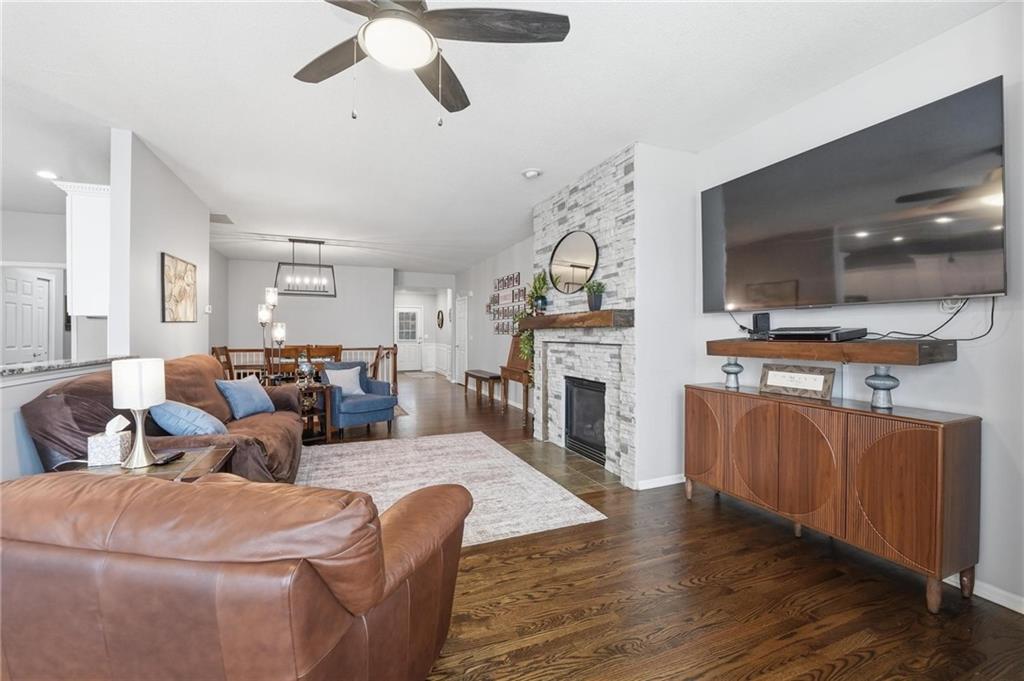 Updated & upgraded true ranch with over 1800 sqft on main level! Finished walkout LL has 1100 sqft finished & large unfinished storage space. Wood floor from entry through dining, living, kitchen, breakfast & primary suite. Fireplace has stone floor to ceiling, with wood mantle. Kitchen has custom cabinets, updated tile backsplash, granite counters & upgraded s/s appliances! 2 dining areas, formal dining offers space for large table & additional cabinet or storage piece, breakfast room is surrounded by large windows and door out to expanded deck, with stairs down to patio & great backyard with black metal fence. Large laundry room off kitchen. Primary suite has huge walk-in closet, private bath with granite dbl vanity w/ vessel sinks, large tiled shower. 2 additional bedrooms share hall bath. Lower level family room offers tons of space for media, games, workout space. 2 large bedrooms & bathroom with shower. Great storage space remains, great for workshop as well. Door out to patio and backyard. Garage is 30' wide and all 3 bays are 22' deep! Engineered floor joists.