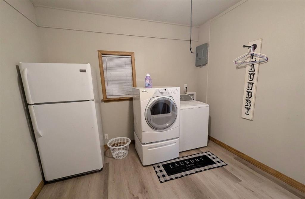Welcome to this well-maintained 2 bedroom, 1 bath home that's truly move-in ready. The home features sleek vinyl plank flooring throughout most of the interior, offering both durability and style. The kitchen is nicely updated with attractive cabinetry and a new gas stove and hood. A generously sized backyard provides plenty of possibilities—garden space, play area, outdoor entertaining, and more. You'll also appreciate the large laundry/mud room, which offers valuable additional storage. The home is equipped with central gas heat and an electric water heater. Agent Owned.