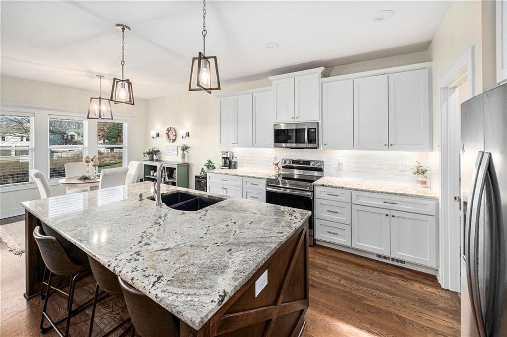 Wrap up the year with a beautiful ranch/reverse 1.5 story in Cherry Hill that is just 4 years old! HUGE fenced backyard with landscaping and firepit with no homes directly behind providing a great spot to roast the s'mores. One level living with two bedrooms and two full baths on the main level, two bedrooms and a full bath in the basement along with a second living area and ample storage space. Gorgeous kitchen with Granite counter tops, large island, plenty of cabinet space and walk in pantry. Enjoy your morning coffee on the covered deck or head downstairs where walkout lower level provides a private setting on your covered patio. Energy saving solar panels recently added. So much to love in this nearly new home!