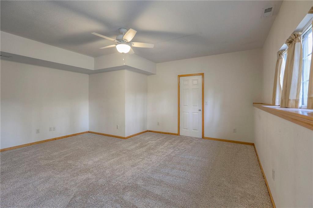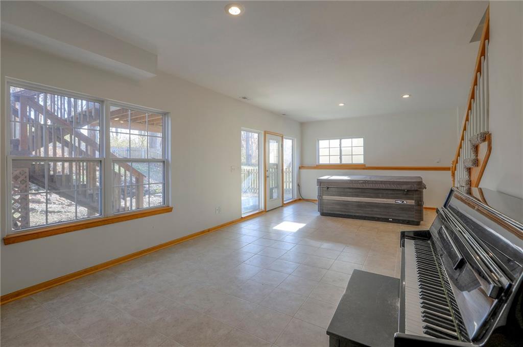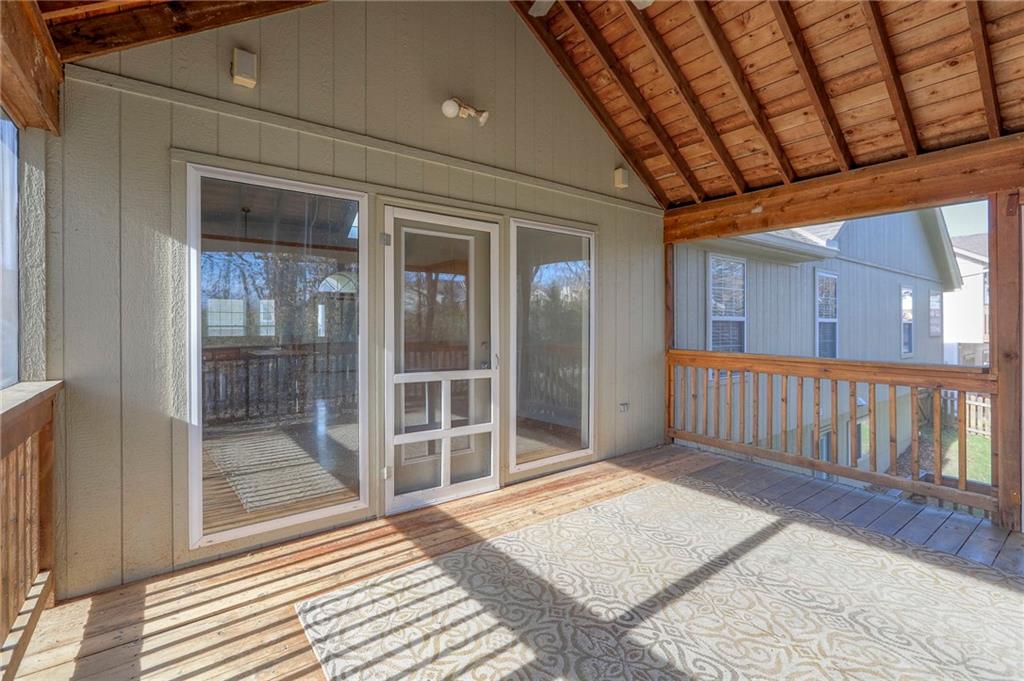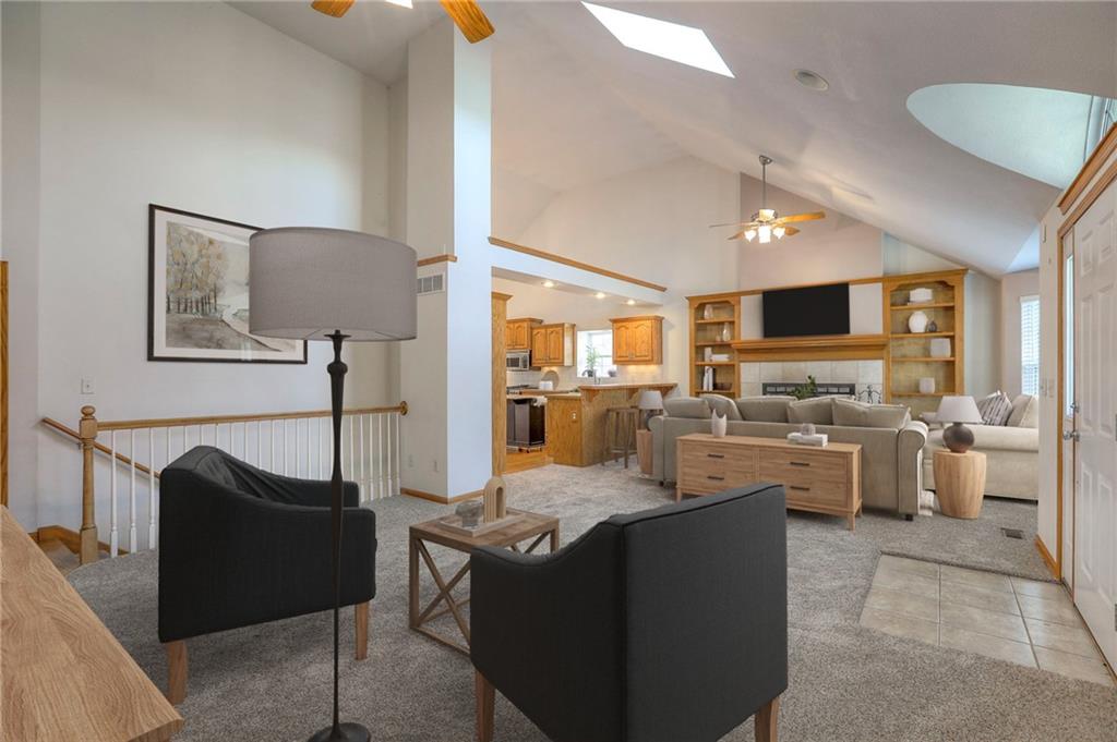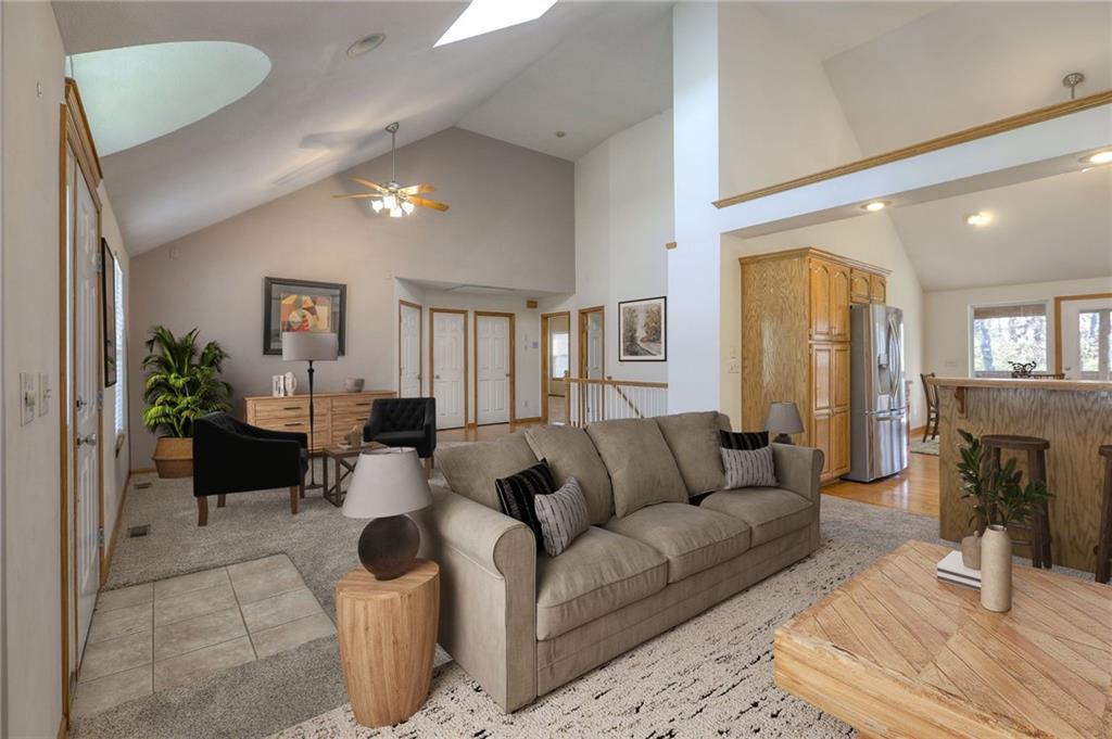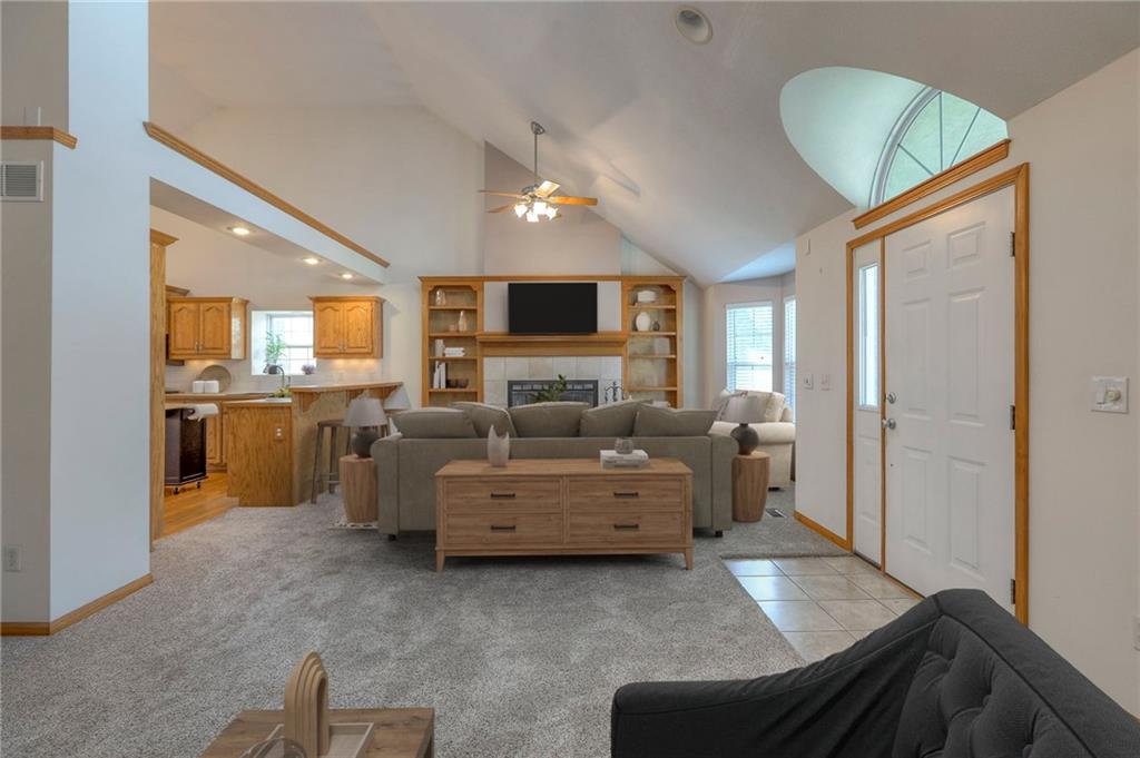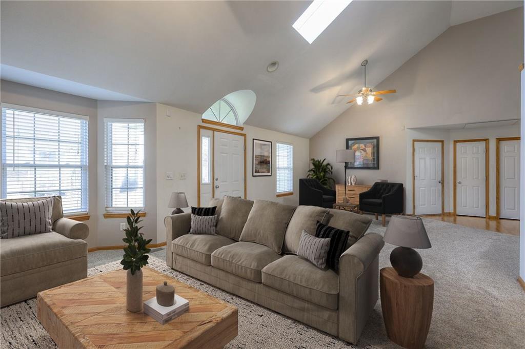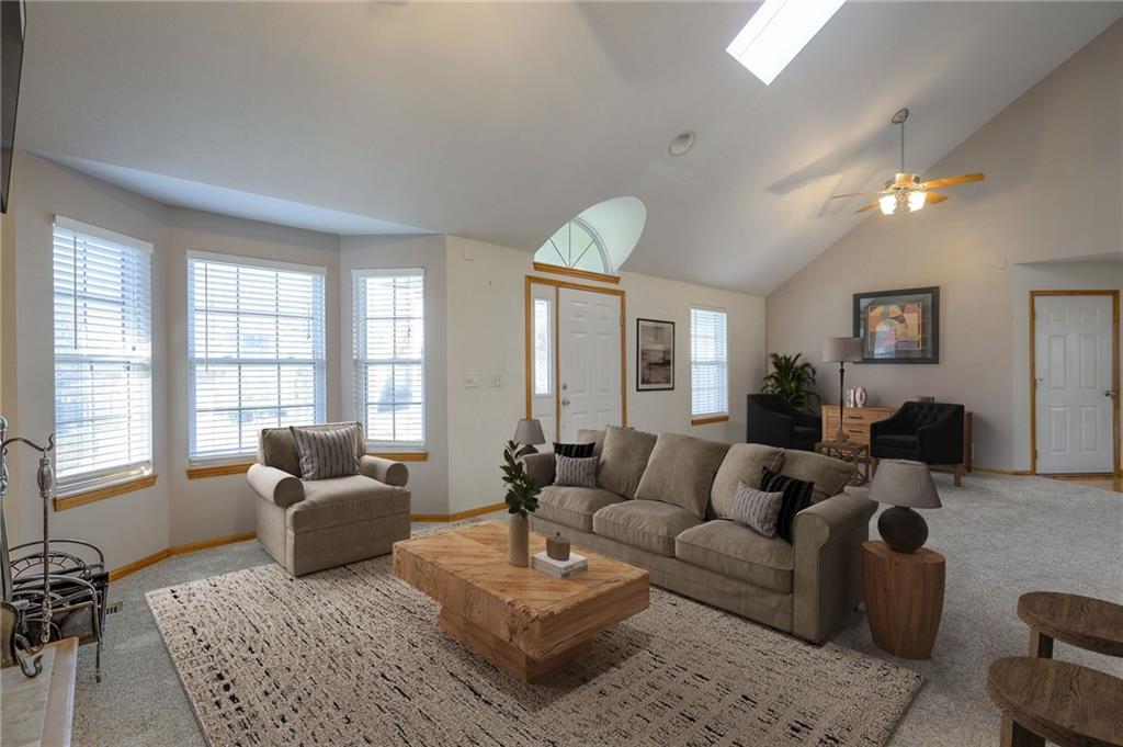 Come take a look at this wonderful home with a highly desirable layout featuring the primary suite, second bedroom, and laundry all on the main level. The oversized living room boasts vaulted ceilings, a wood-burning fireplace, and abundant natural light, flowing into the kitchen with hardwood floors, ample cabinetry, and stainless steel appliances. The fully finished walkout basement offers a spacious family room and two large bedrooms, providing plenty of room to spread out. Enjoy a private, fully fenced backyard backing to trees and green space, complete with a stunning koi pond and two waterfalls. Relax on the screened-in deck with vaulted ceiling or the covered patio below while enjoying the soothing sounds of the fountains. A three-car garage offers ample space for vehicles and a workshop. Recent updates include new carpet throughout and newer tile in the family room.