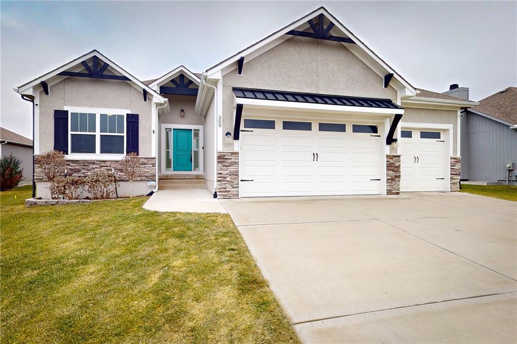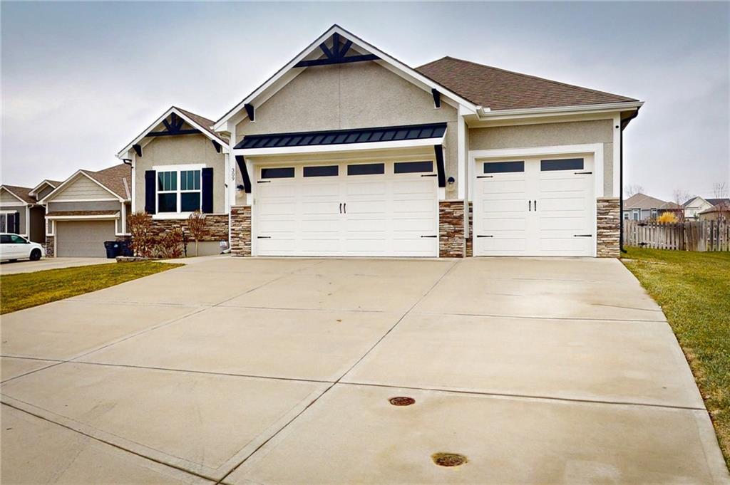 This beautiful Trumark Home - The Marie II is a Reverse 1.5-story / Ranch. This home is move-in ready and only 6 years young! Featuring 4 bedrooms, 3.5 baths, and a 3-car spacious garage, this property sits on nearly half an acre—one of the largest lots in the neighborhood—complete with a fenced backyard. Step inside to an open, high ceiling, inviting floor plan with a spacious living room that flows seamlessly into the dining area and kitchen. The kitchen offers granite countertops, ample cabinetry, a walk in pantry AND a butler’s pantry with a wine fridge for added convenience. The main-level Primary Suite includes a large walk-in closet with pulldowns connected to the laundry room, plus a gorgeous en-suite bath with quartz countertops. A second main-level bedroom adds versatility for guests or office space. The finished lower level expands your living space with a generous family room and wet bar, along with Bedroom #3 featuring a private full bath, and Bedroom #4 with an attached half bath. A storm shelter provides peace of mind. Outdoor living shines with an oversized stamped patio, built-in firepit, and a grill gazebo that stays. The back quarter of the yard is home to multiple garden areas with strawberries and blueberry bushes, and a 6-zone sprinkler system keeps everything lush and green.