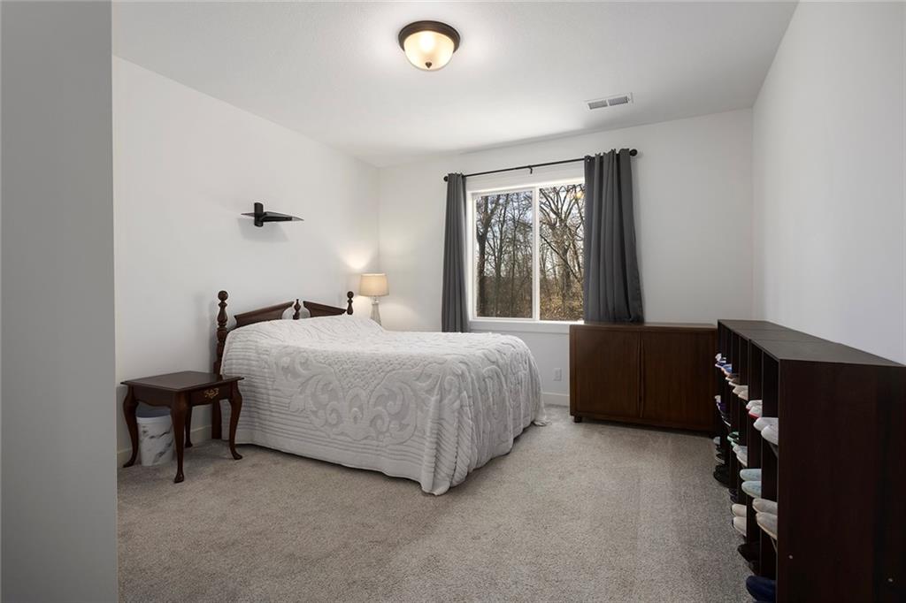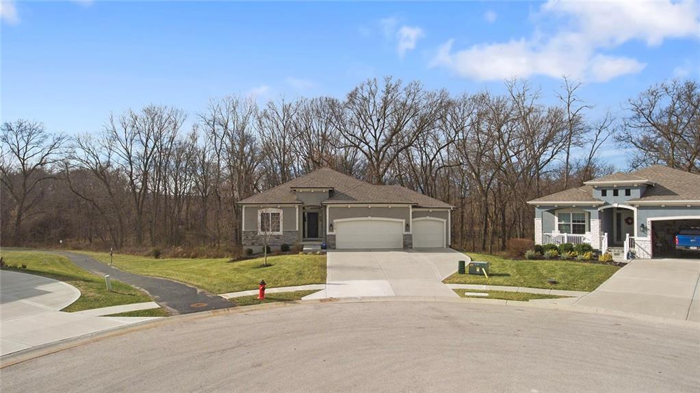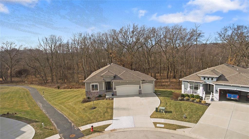 Amazing reverse 1.5-story patio villa tucked at the end of a quiet cul-de-sac, backing to mature trees for exceptional privacy—no neighbors behind! Seller has thoughtfully marked the approximate property lines within the wooded area using pink markers for easy reference. Enjoy direct access to the walking trail right from your backyard, plus a covered Trex deck and a lower-level patio perfect for relaxing and taking in the surrounding nature and wildlife. Maintenance-provided living includes lawn care, landscaping, sprinkler system, and snow removal—making this home truly low maintenance. Monthly maintenance fee is $155. The main level of the popular Somerset floor plan offers comfortable, functional living with the primary suite, a second full bath, an additional bedroom ideal for a home office, and a convenient main-level laundry room. The spacious kitchen—complete with a gas range, coffee bar area, walk-in pantry, and adjoining dining area—opens directly to the living room, where a cozy gas fireplace and abundant natural light create a warm and inviting space. The finished walkout lower level features a large rec room, along with two generously sized bedrooms, each with its own walk-in closet, plus an additional full bath. The lower level also includes an oversized storage room and a dedicated mechanical/storage space, providing excellent options for organization and utility. A three-car garage completes the home and offers even more storage versatility. This home has been gently lived in and is in like-new condition. A beautifully maintained property offering privacy, functionality, and main-level living. Come see it today!