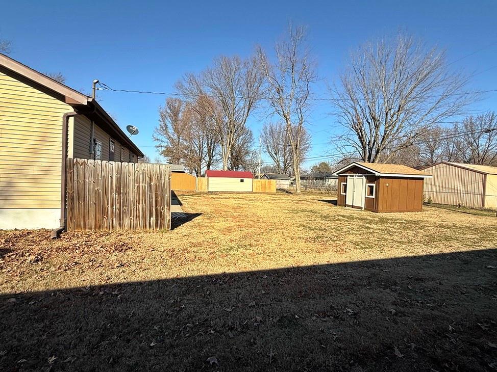 Southside Home for Sale in El Dorado Springs, MO. Schedule a showing soon to see this 3 bedroom, 1 bathroom starter home on the southside of El Dorado Springs, MO. This 1,054 sq ft home offers low-maintenance, charming curb appeal with the vinyl sided home with shutter accents. The home features a large living room. Then kitchen/dining combo offers a small bar for dining or additional countertop space as well as a pantry closet for additional storage. An electric range and vent hood are sold with the home. The window over the kitchen sink gives a nice view of the open backyard that features a 9’x18’ concrete patio perfect for shaded summer evenings. The home features a newer HVAC & water heater. The one car attached garage gives convenient parking and the tool shed out back provides great outdoor storage. Nice condition homes in this price range are difficult to find, so call soon!