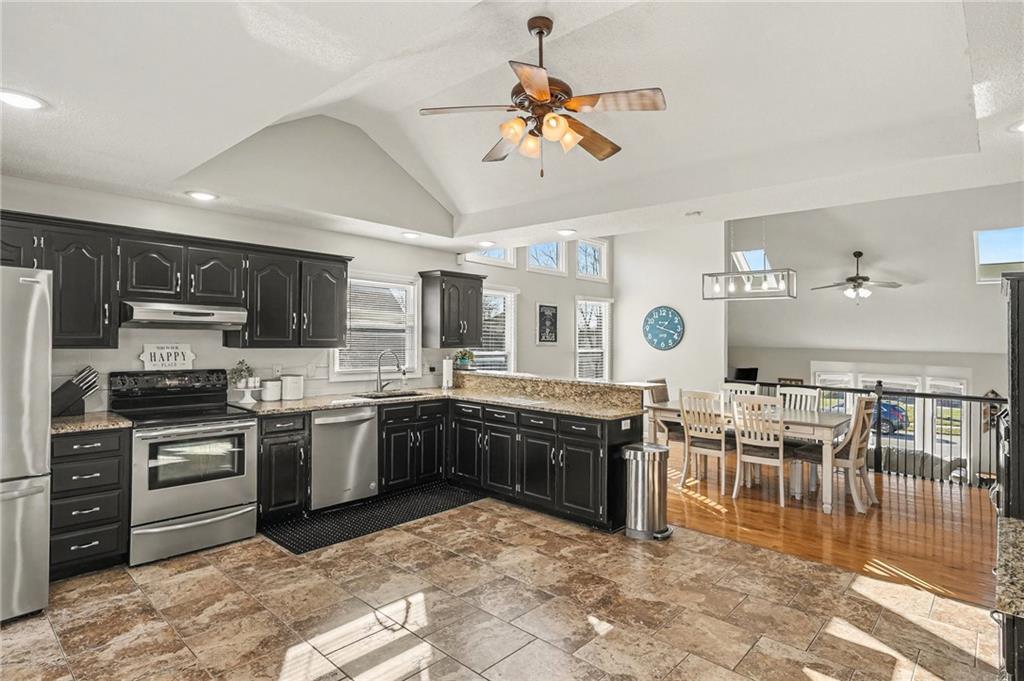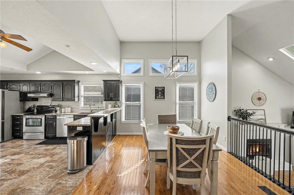 Fresh, modern paint inside and out sets the tone for this beautifully updated home. An expansive, open-concept kitchen anchors the main living area, enhanced by vaulted ceilings, skylights, and abundant natural light for a bright, upscale feel. Retreat to the oversized primary suite, complete with a double vanity, walk-in closet, Jacuzzi tub, and separate walk-in shower. Two additional upstairs bedrooms provide excellent space and comfort. The main level offers inviting living space with a stylish fireplace, while the finished lower level adds a spacious family/rec area, the fourth bedroom, and a walkout to the yard. A versatile sub-basement delivers outstanding storage, hobby space, or room for future expansion. All nestled in the sought-after Carriage Crossing neighborhood.