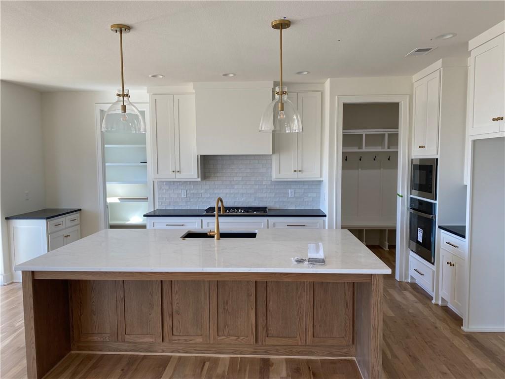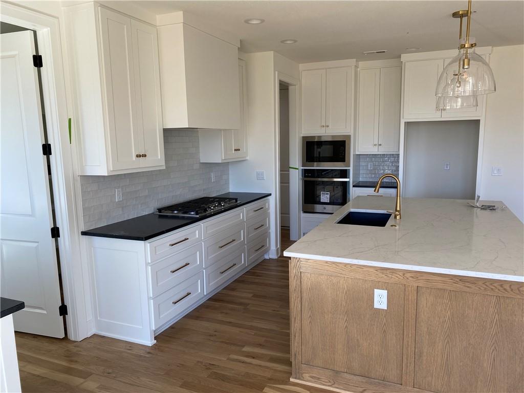 Move-in Ready! The Magnificent "Magnolia" by Chris George Homes, LLC. with a 4-Car 40 ft long pass through Garage on a cul-de-sac homesite in Stonebridge Pointe! Filled with an abundance of natural light, this home radiates warmth and comfort from the moment you step inside. Rich warm woods flow throughout the 1st floor, creating an inviting, timeless aesthetic that perfectly complements the bright, airy spaces. The "Magnolia" has so many custom features that you will absolutely love! And practical features like high efficiency HVAC, Pella Windows, 8' Tall Garage Doors. It's bright, open and great for entertaining. It features 4 bedrooms and 3.5 baths and a main floor private office which is located off the front entry. Walk into a stunning great room, chef's dream kitchen with huge island and Site Finished White Oak Floors, dining room surrounded by windows and an excellent sized Walk-in Pantry. The Mudroom in the back hall has a large built-in boot box. Spacious Primary Suite with spa like Primary bath are upstairs with 3 other spacious bedrooms and laundry room. Top of the stairs has loft area/reading nook or study area for the kids. Home has an attractive covered patio off the back of home with stairs to the yard and an irrigation system for a beautiful lawn and landscaping. The home backs to the southwest and the large and open LL is ready for finish. 1238 Acre Heritage Park is 2.2 miles away with a Lake, Dog Park, Sports Parks, Golf Trails and so much more. Garmin International Headquarters 2.0 miles away. 1-35 and 151st Street 2.4 miles for easy highway access and Olathe Medical Center Pavilion Hospital is 4.6 miles. K-8 schools 0.2 miles away. Taxes and mileage are estimated. Room Dimensions are approximate. Photos are of the actual home which is finishing construction. Please see the Community Managers for more details.