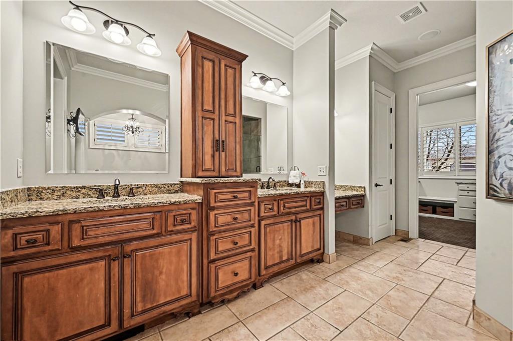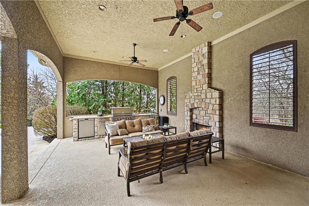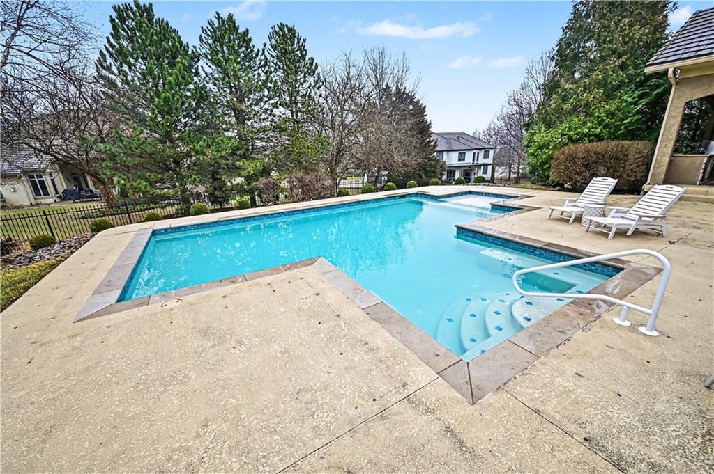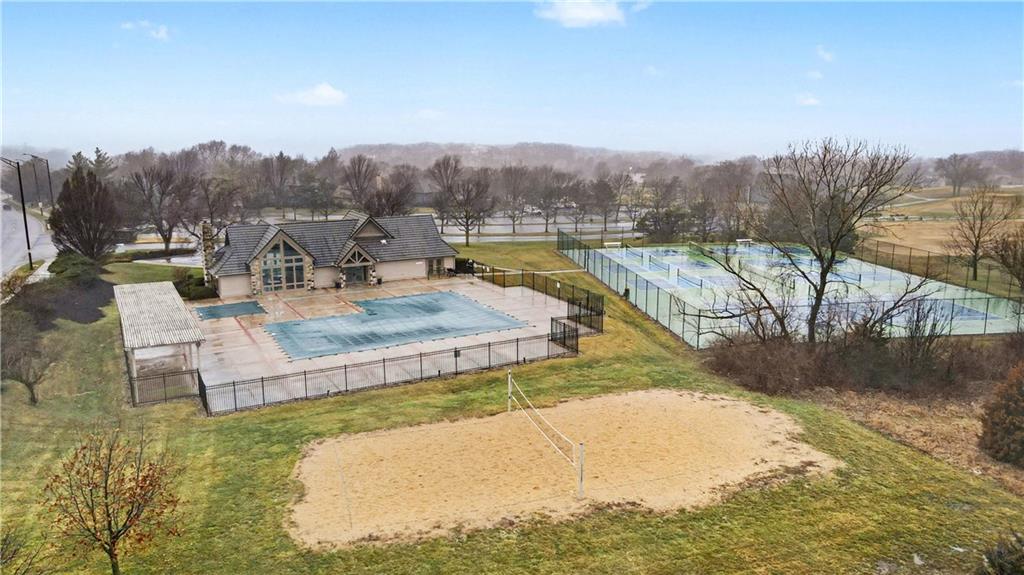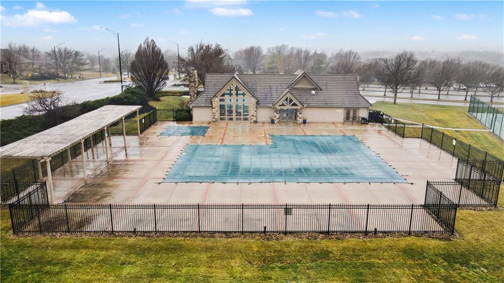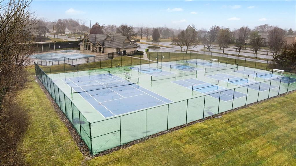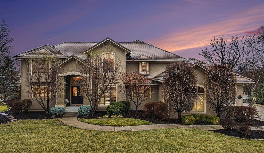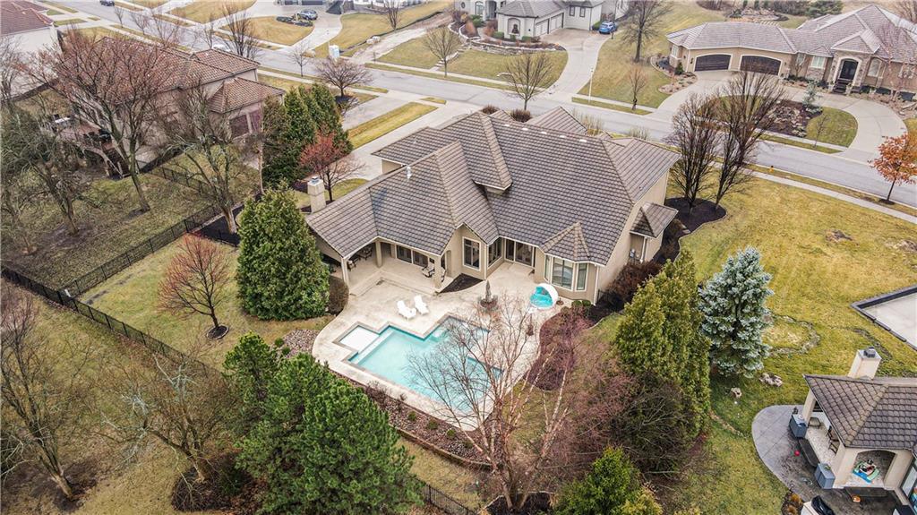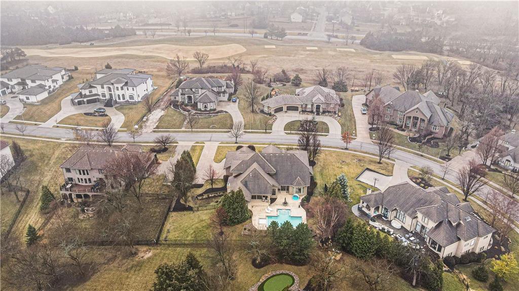 Exquisite 5 bedroom estate home in the sought-after golf course community of Falcon Ridge Estates! Spacious and rare 1.5-story with two main-floor primary suites, two laundry rooms, a saltwater pool, and 5,000+ sq ft. From the side-entry garage to the double front doors and grand two-story entry, you’ll want to call this house HOME! Off the entry is an office with French doors, leading into the spacious open main floor-perfect for entertaining or large families. The highlight is the true chef’s kitchen with 3 WOLF ovens, a 6-burner cooktop with griddle, plus a convection/multi-function oven. Additional features include an ice maker, 2 dishwashers, custom cabinetry, 2 lazy Susans, a large walk-in pantry, SUB-ZERO refrigerator, and an L-shaped granite island with seating for 6+ barstools. The kitchen and dining areas open to the family room with a gas fireplace, floor-to-ceiling windows, and French doors leading to the patio and pool. Enjoy the outdoor kitchen with Viking grill, cooktop, and mini fridge under a covered lanai with wood-burning fireplace and TV area. Primary suite #1 features hardwood floors, sitting area, and spa-like bath with double sinks, vanity, spa tub, TV, walk-in shower with multiple heads and bench, plus an extra-large walk-in closet with second laundry. The second primary suite is also on the main floor with a free standing bathtub, walk-in shower, walk-in closet and lanai access. Also on the main are an office nook, LG laundry rm, 1/2 bath & mudroom. Upstairs offers three additional bedrooms-each w/private bath & lg walk-in closet plus a spacious family room. Granite counters in all baths, plantation shutters throughout, hardwood & tile flooring, iron spindles, beautiful molding details, wide staircases+more. Over 3,000 sqft in the lower level ready to customize! Neighborhood amenities include two pools, pickleball, tennis, sand volleyball, & basketball. Golf optional. Minutes to trails, Lake Lenexa, downtown Lenexa, restaurants, & highways.