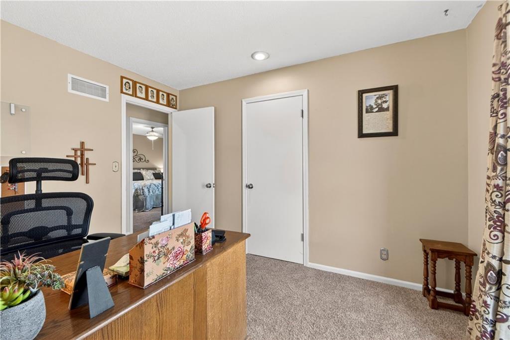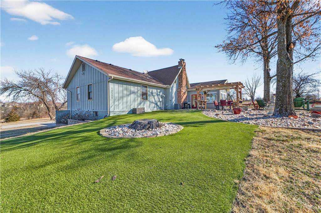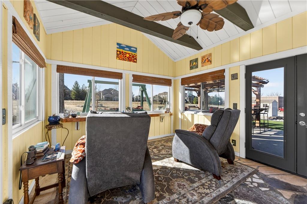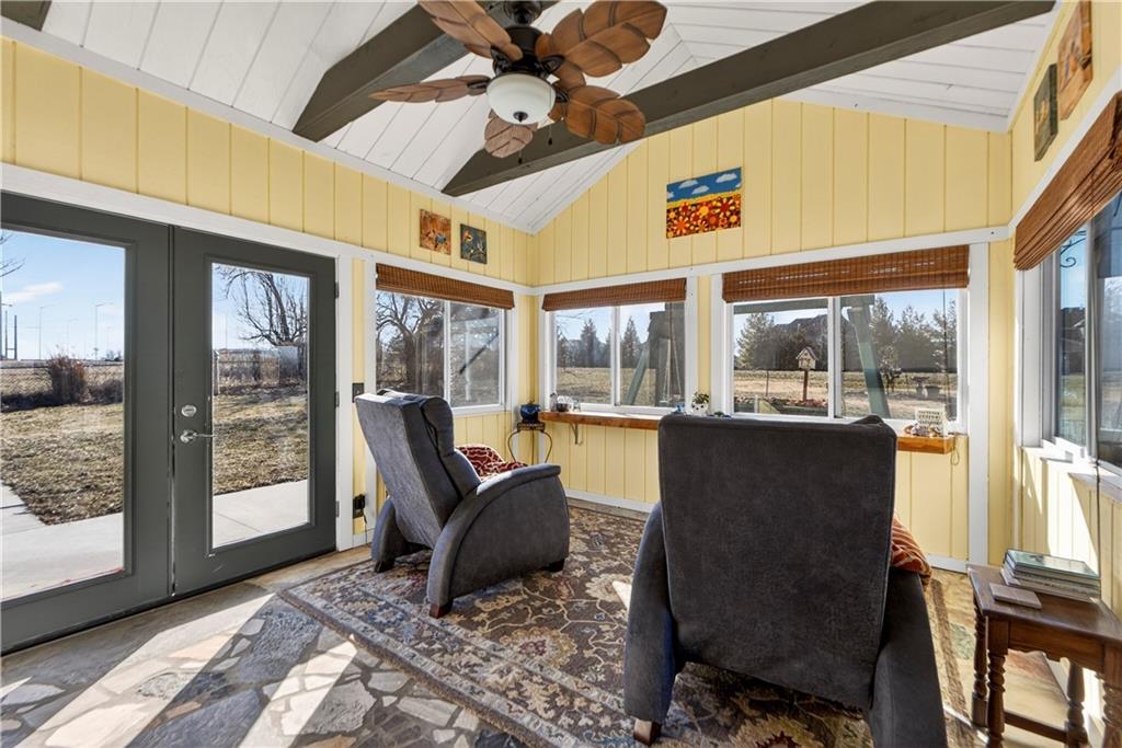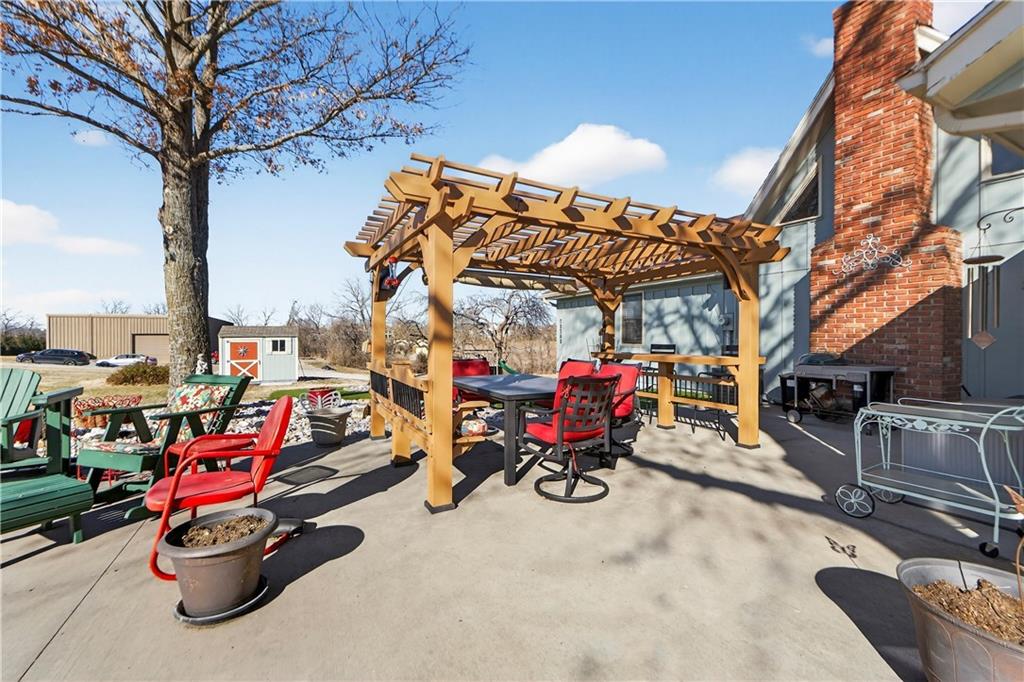 Rare Opportunity on 3.66 Acres in South Overland Park! This unique property offers incredible flexibility with a raised ranch home and an impressive outbuilding—both located within city limits and with no HOA. The home sits on a 1.05-acre lot and features a light, open interior with vaulted ceilings and spacious living areas. The kitchen offers granite countertops, subway tile backsplash, and ample cabinetry, opening to the main living space for easy everyday living and entertaining. A bright sunroom with vaulted ceilings and a wall of windows overlooks the front yard and provides access to the side driveway and patio area with gazebo and partial turf yard. The lower level offers additional living space ideal for guests, hobbies, or storage. The true standout feature of the property is the massive 4,692 sq ft outbuilding situated on its own 2.61-acre parcel. The building includes propane heaters, electrical panel, water source, a half bath, and a 464 sq ft mezzanine that can function as office space or additional storage. Both parcels—totaling 3.66 acres—are included in the sale and share a single access point. Currently zoned residential, this setup creates endless possibilities: operate a home-based business, create exceptional workshop or hobby space, store vehicles and equipment, or build a luxury estate. Located in a rapidly growing area of Overland Park near shopping, dining, parks, and major highway access, this property also sits adjacent to the luxury homes of Garnett Hill—creating a rare opportunity to own acreage in a premier location without HOA restrictions.
