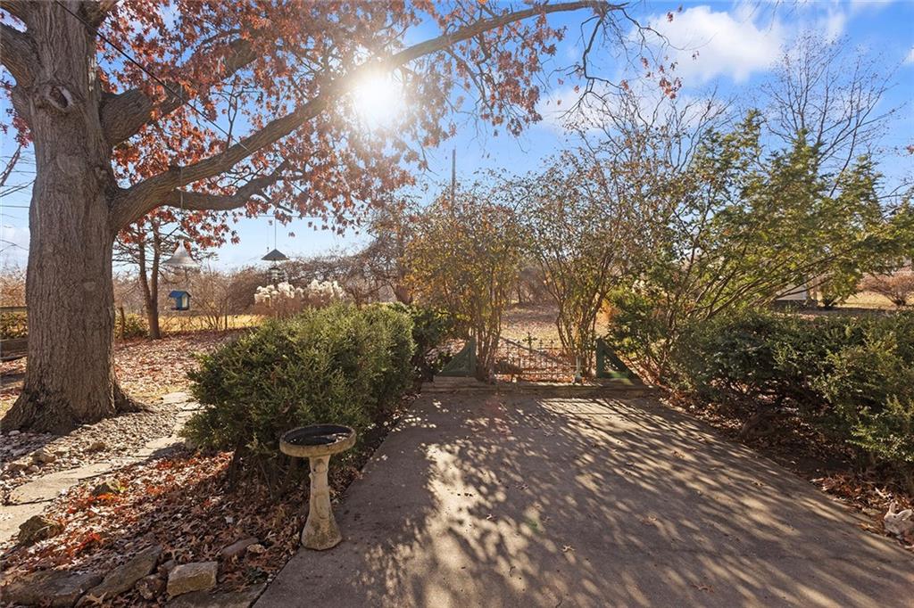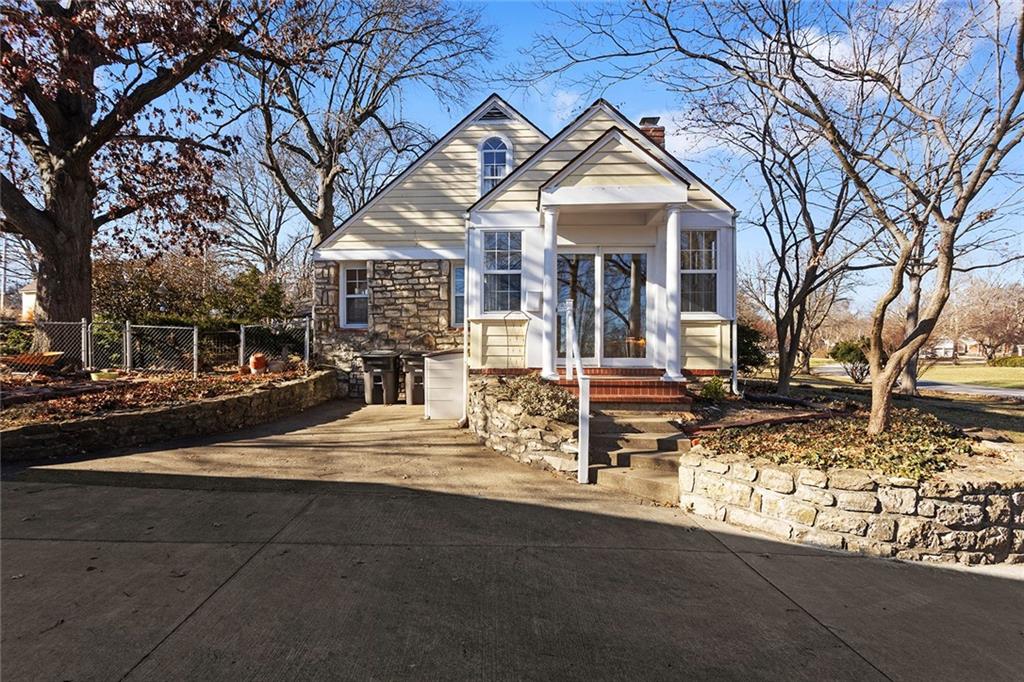 Stone Cottage with Timeless Character, Nestled at the end of a peaceful cul-de-sac on nearly .50 acre. Home backs to Drumm Farm Golf Course, delivering serene views and that “exhale the moment you pull in” feeling. Golden Acres offers a lifestyle that feels increasingly rare today. Tree-lined streets without streetlights create a peaceful, park-like setting where evenings feel calm, quiet, and beautifully natural. Neighbors are outdoors, enjoying walks, friendly, and pride of ownership with well cared for homes throughout the community. This charming home and neighborhood offers a slower pace of living. The cheerful sun porch—with its exposed stone details—offers flexible space for relaxing or home office. Inside, sunlight pours through generous windows, highlighting hardwood floors throughout the main level, a cozy fireplace, and timeless character throughout. The main-level primary suite (added in 2011) offers a private retreat with an ensuite bath and walk-in closet, while the second level provides a potential second primary suite with a dormer, newer windows, and an updated full bath. Thoughtful updates blend seamlessly with the home’s original soul—never trying too hard, never losing its charm. This is the kind of home that feels special the moment you see it—and it was special enough to be featured in the Kansas City Star. Warm, welcoming, and full of personality… this one doesn’t just stand out, it sticks with you. You will enjoy showing this home. Seller is open to working with the right offer.
