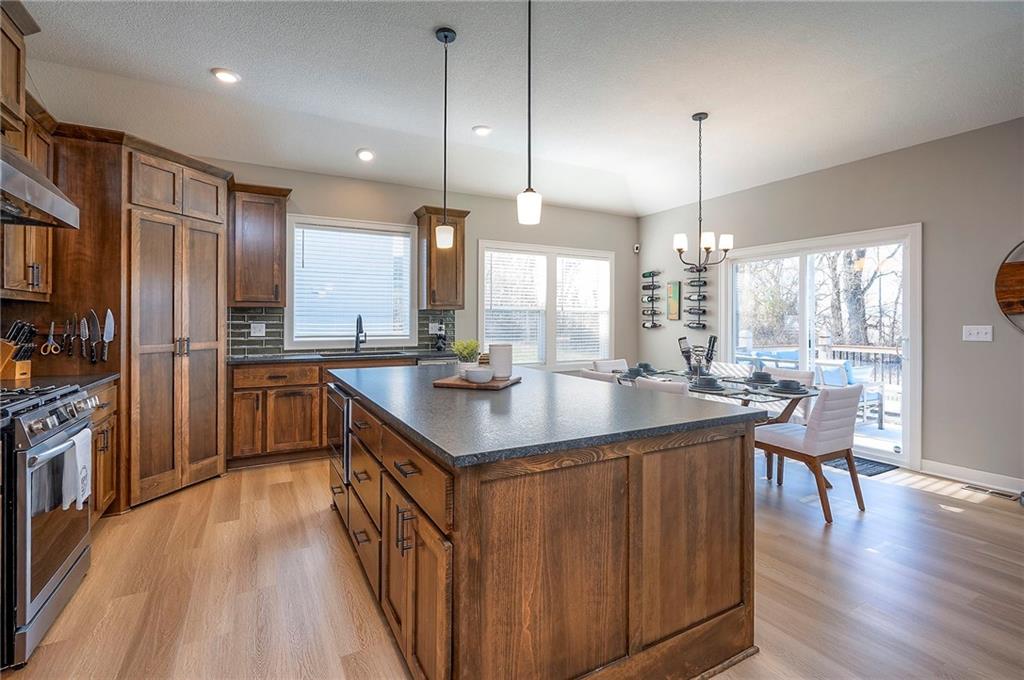 Built in 2024, this Carbondale craftsman ranch plan offers everything you are looking for! The owner built this home with thoughtful details such as an insulated 3 car garage with 8ft doors to fit a full size truck, expanded concrete patio, wrought iron fence, and an upgraded lot backing to trees with no neighbors behind. Wide open layout with lovely stained cabinetry, walk in pantry and green glass backsplash plus a spacious island for all your prep. The eat-in kitchen has seating at the island as well as space for a big table to seat 8+. Main floor laundry and built-in drop zone with organization for shoes and jackets. The primary bedroom suite is a retreat with ceiling details and fan, a bathroom with tiled shower with bench and quartz double vanity. The enormous closet with plentiful hanging space and built-in shelves adjoins the laundry room with built-in folding table or working desk. Enjoy the covered front porch with craftsman wood beams or the level fenced backyard with a view of the trees and pasture. Foxwood Ranch has a community pool, playground and walking trails. The basement has an egress window and is ready for your future finish. Why wait to build? This home is ready now! Full floorplan and walkthrough video available.