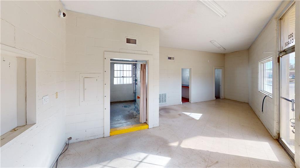 This prime commercial flex space is ready for your business! Located at 202 N Osage Boulevard and directly positioned on Business Highway 49 (Business Loop I-49) in Nevada, MO, this property boasts an excellent traffic count and high visibility. The versatile layout offers approximately 1,400+ square feet, including a finished 585 sq ft office area and an essential 896 sq ft warehouse featuring drive-in doors for easy logistics. The lease is structured as a year lease, requiring a satisfactory credit reference from all applicants. Under the lease terms, the Landlord is responsible solely for the structural components (the "four walls," including the roof and foundation), while the Tenant is responsible for all other costs and maintenance, making it a clear, defined arrangement ideal for a practical business looking for a great location.
