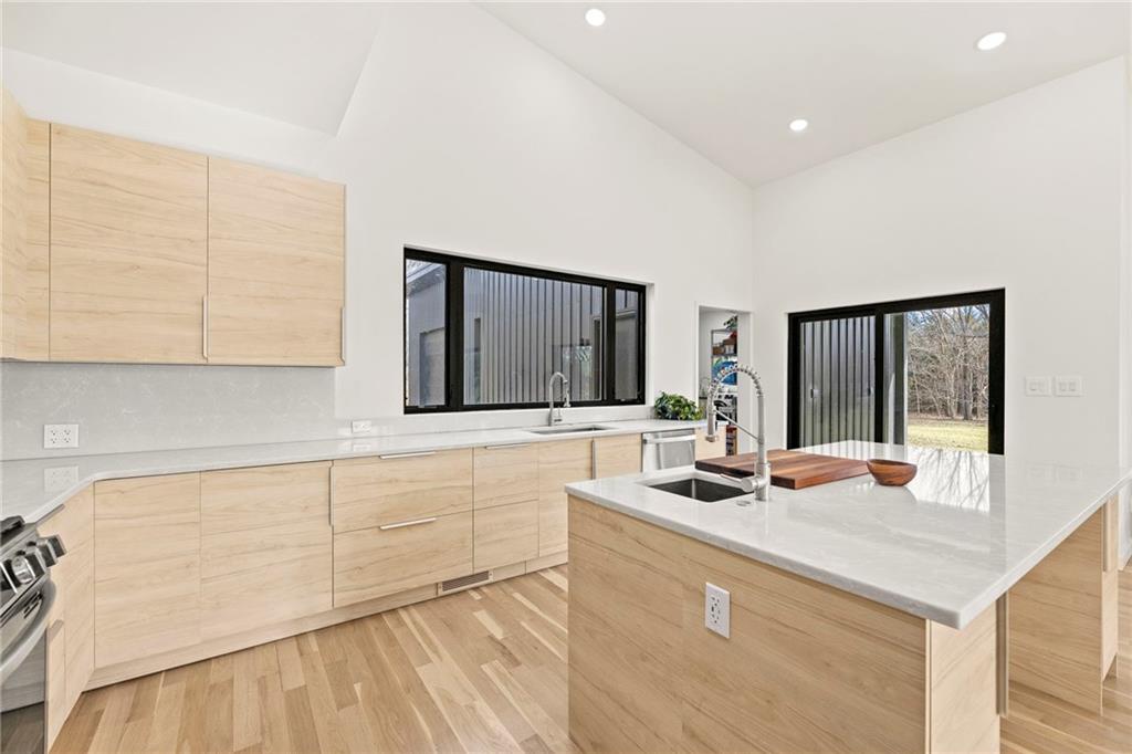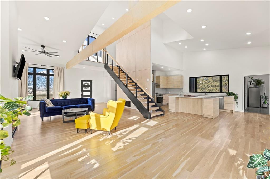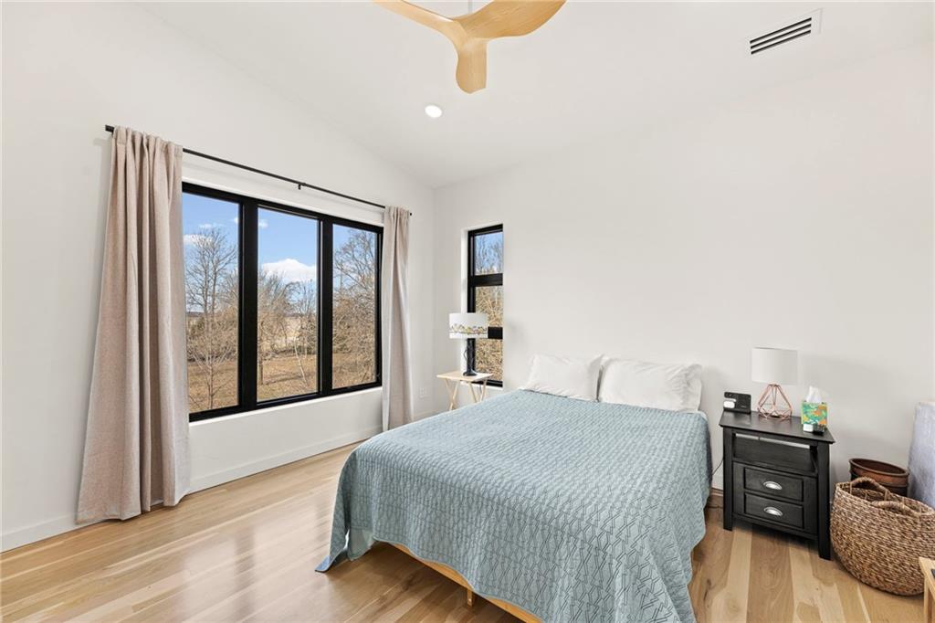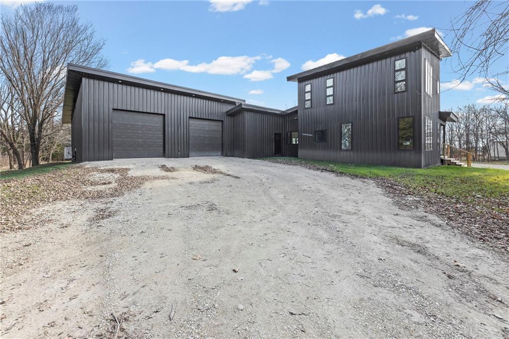 **MOTIVATED SELLER** Discover a truly one-of-a-kind new construction set on 9.5 private, wooded acres, offering peaceful seclusion just 0.2 miles from the city limits on a paved road. This custom-built modern home pairs clean architectural lines with warm natural materials, creating a light-filled, open-concept design with soaring ceilings. Built for longevity and efficiency, the home features 2x12 floor joists and 2x6 exterior walls, along with expansive dual low-E Pella Impervia insulated windows that flood the interior with natural light. White oak hardwood floors extend throughout the living areas and bedrooms, complemented by a striking floating staircase with thick white oak plank steps. The thoughtfully designed layout includes three bedrooms, two and a half bathrooms, and a spacious 1,000+ sq. ft. attached two-car garage with 10-foot garage doors. Bathrooms and the large laundry/mudroom are finished with durable tile flooring for everyday practicality. At the heart of the home, the chef-ready kitchen showcases premium finishes and a large island that seamlessly connects to the dining and living spaces—ideal for both daily living and entertaining. The main-floor primary suite offers a private, serene retreat, while additional rooms flex easily as guest suites, a home office, or creative studio. Indoor-outdoor living is emphasized through access to a covered patio overlooking quiet forest views, perfect for morning coffee or relaxing evenings under the stars. Despite its private setting, the property is fully connected to city water, gas, and electrical services, blending modern convenience with acreage privacy. This exceptional property offers a rare combination of modern design, superior craftsmanship, and natural surroundings—a lifestyle opportunity seldom to be found. Schedule your private showing today.