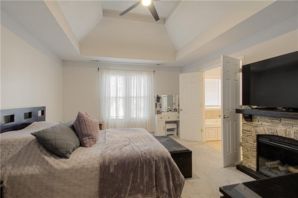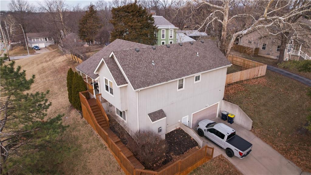 Welcome to a truly one-of-a-kind home that instantly feels warm, open, and inviting. As you step inside, soaring ceilings and a flowing open floor plan create a light-filled space that’s perfect for both everyday living and memorable gatherings. The front windows frame stunning Downtown skyline views and deliver some of the most beautiful sunsets you’ll enjoy from the comfort of your own living room. With two spacious living areas, there’s room to relax, unwind, or entertain with ease. The vaulted living room sets the tone, while the second family room offers a cozy fireplace with built in bookshelves and plenty of natural daylight, ideal for quiet evenings snuggling up with a book. The kitchen is both functional and welcoming, featuring abundant cabinetry and a sunny breakfast nook where mornings feel easy and unhurried. The generous primary suite is a peaceful retreat with a huge walk-in closet and a private bath complete with a jetted tub and separate shower while the other 2 Bedrooms have direct bathroom access to the Jack-n-Jill bathroom. Downstairs, a 28x18 finishable sub-basement space offers endless possibilities, while the garage which could double as an indoor basketball court with 14-foot ceilings, adds a fun and unique touch you won’t find anywhere else. The spacious backyard provides a great spot for pets, play or outdoor relaxation with the newly constructed privacy fence. Ideally located with quick access to I-435 and I-35, this home blends comfort, character, and convenience in a way that’s truly special. HOMEBUYER SPECIAL: Sellers are offering new carpet to be installed prior to closing; carpet samples are available at the home for buyer selection.
