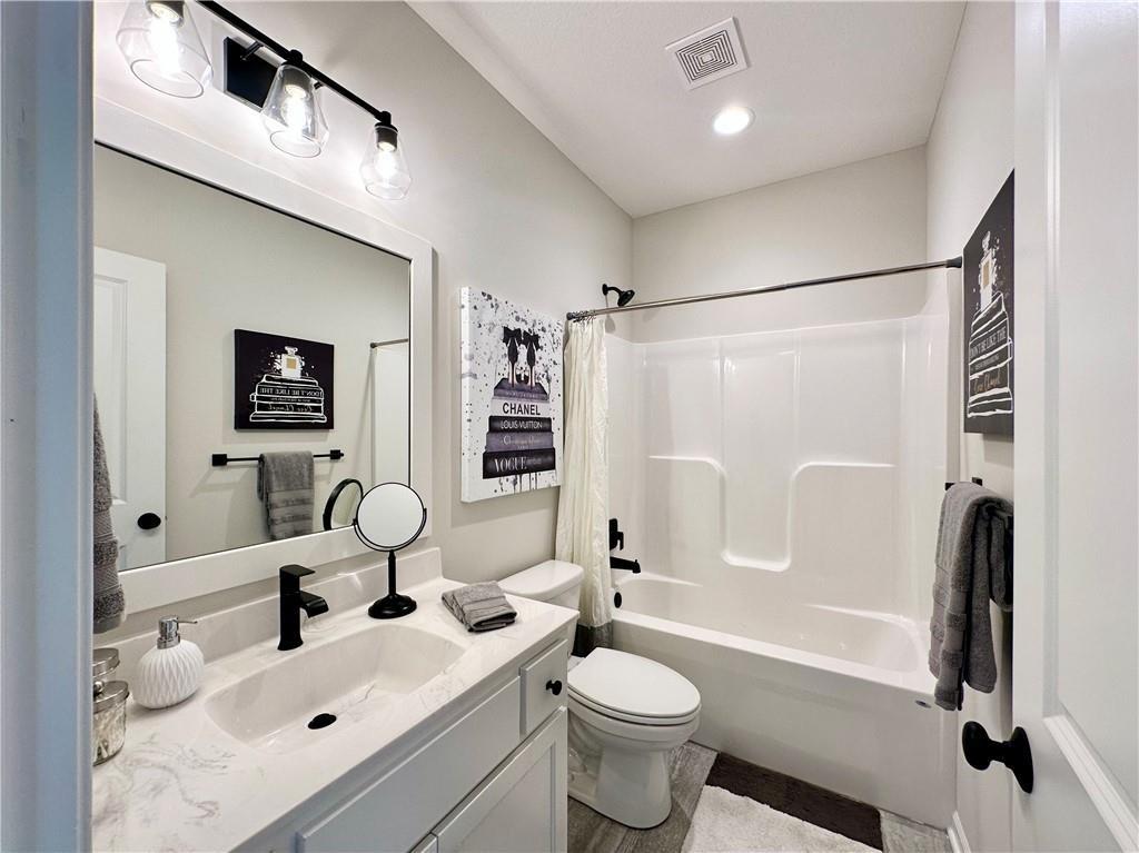 This stunning new construction by New Mark Homes offers an inviting 2,562 sq. ft. ranch/reverse floor plan designed for comfort and style. The main level features 3 spacious bedrooms and 2 full baths, including a beautiful primary suite with a double vanity, large shower, and walk-in closet. The open layout showcases a gorgeous kitchen that flows into the great room and dining area—perfect for both entertaining and everyday living. A large mudroom off the garage adds convenience and function. The finished lower level expands your living space with a generous rec room, 4th bedroom, and full bath. Located on a daylight lot, this home is filled with natural light and includes a lovely deck to enjoy the outdoors.