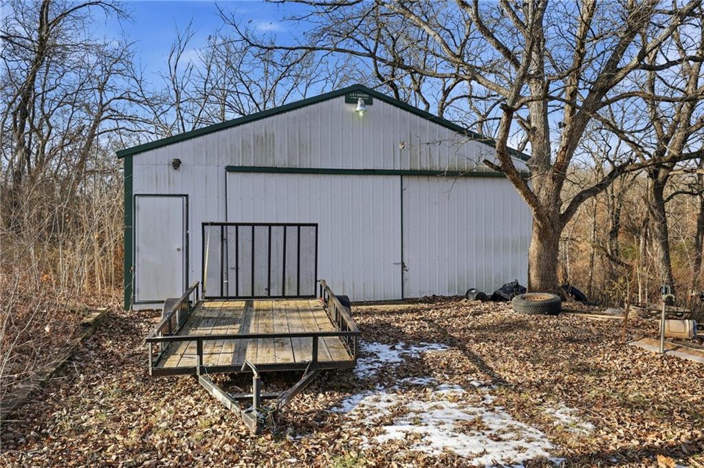 Fantastic opportunity on over 7.5 acres! This 4-bedroom home (plus 2 bonus rooms) and 2 full bathrooms is surrounded by mature trees, offering privacy and a peaceful setting while still providing easy access to Hwy C and a reasonable drive to the KC area. The property includes a large outbuilding for equipment, vehicles, or projects, along with a detached two-car garage—one side insulated and ready for potential additional living space. Major updates are already completed, including a roof approximately 6 years old, a newer garage roof, a recently installed septic system with drain field, and a furnace and A/C around 3 years old. Inside, the upper level features a spacious family room, an eat-in kitchen/dining area with ample cabinetry, and access to the backyard. Three bedrooms and a full bath complete the upper level. The finished basement offers an additional bedroom with closet, full bathroom, entertaining space, and two bonus rooms. Partially fenced and full of potential—don’t miss this one!