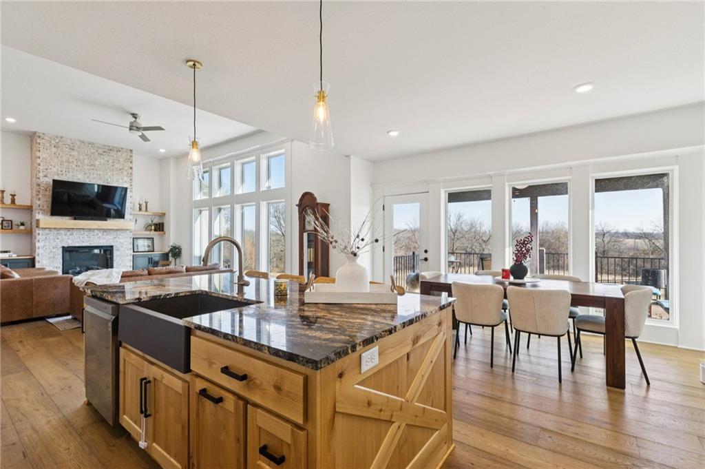 Stop the Car! *** Just over 3 years young *** ALL ONE LEVEL living *** 5 acres *** Liberty! Built by reputable Heartland Homes: perfect blend of modern luxury, peaceful acreage, and everyday convenience with — NOOOO HOA!!! Thoughtful upgrades throughout. 5 acres JUST outside of town, get the privacy and nature without sacrificing quick access to amenities. 4 bedrooms, 3.5 baths, and 3,228 sq ft—a floorplan that’s spacious enough to live comfortably yet easy to maintain. The craftsmanship shines from the moment you walk in with so many upgrades: vaulted ceilings, white oak cabinetry, wood floors throughout, and luxury live edge granite, upgraded floor to ceiling tile in the bathrooms just to name a few. Keep the home clutter free with oversized drop zone & storage galore. The finished walkout basement is a dream space beyond the 2 bedrooms — the rec area is wide open with 10' ceilings, luxury vinyl plank flooring, a wet bar, and endless flexibility. Add bedrooms, create a home gym, design a theater. The possibilities are wide open with the finished AND unfinished space. In fact, plumbing rough-in's already installed for a future dog wash station. Impressive Outdoor living with composite covered deck, a 15' extended patio also partially covered, and plenty of room to add a future pool thanks to lateral lines thoughtfully placed to the south side. The property includes two tax parcels under one legal description, giving you the option to designate one as agricultural if desired. Property is all electric. A huge bonus: the 30' x 50' outbuilding with concrete floors—perfect for equipment, hobbies, vehicles, or a workshop. Has 3 overhead doors (two on north and one on east). Located in the sought after Liberty School District, this home offers the rare combination of acreage, upgrades, convenience, and freedom. And yes… no HOA!!!