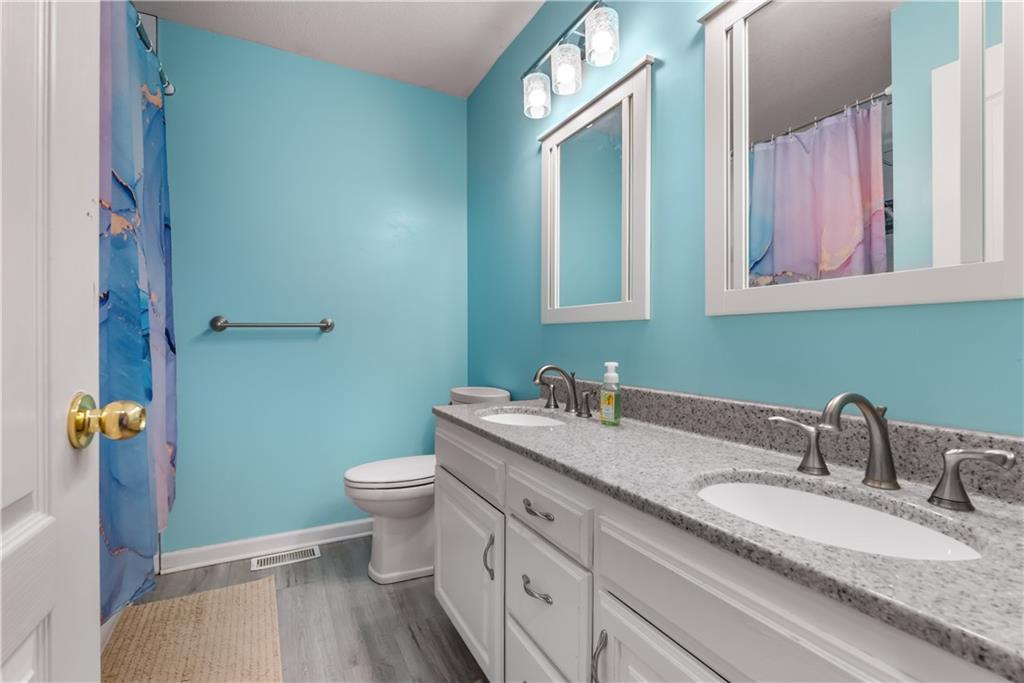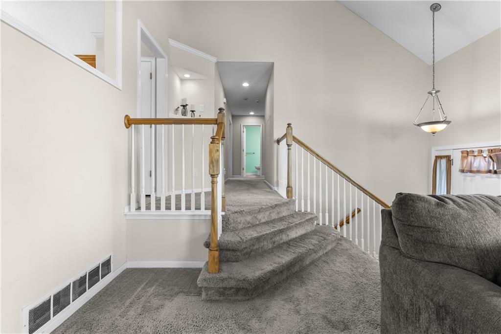 Remarks & Directions Beautiful 4 bedroom home with 3 car garage in Eagle Creek subdivision. Neighborhood includes extensive walking trails, play areas and swimming pool! Main floor family room with fireplace and vaulted ceilings. Open kitchen with breakfast bar and stainless appliances. formal dining room. Main level has 3 bedrooms. Main level master features vaulted ceiling, double vanity, walk in closet and jetted tub. Finished walk out basement has 4th bedroom and spacious family room. Sub basement is also finished. Private fenced yard backs to common area and trees