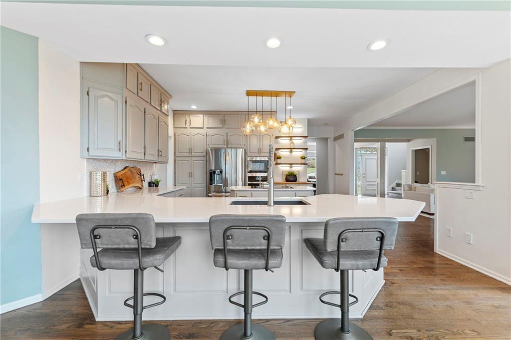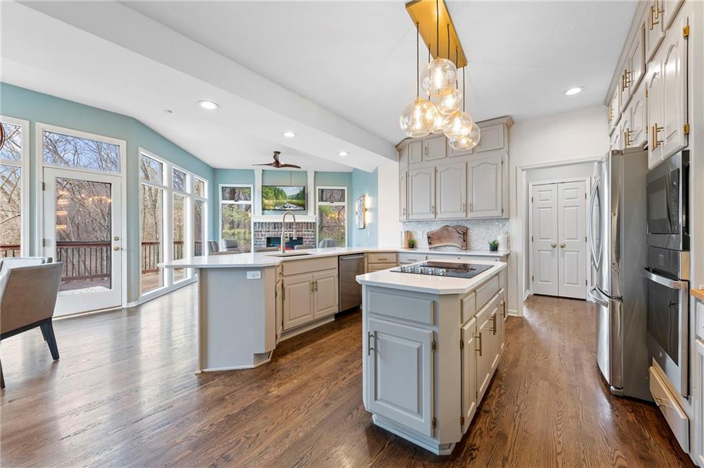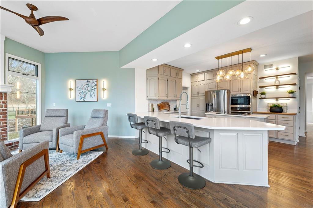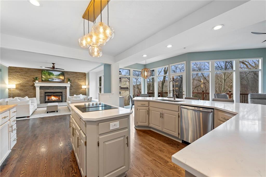 HELLO Beautiful! Exquisitely updated home in the Hills of Monticello! Situated perfectly on a treed lot, nearly .5 Acres and water views! Soaring entryway, classic oak hardwood floors caress the main floor, Formal Dining, Spacious living Room with Fireplace and custom accent wall, Gas Fireplace and mounted TV. Completely updated kitchen with painted cabinets, quartz counters, Prep station with butcher block counters and exposed shelving, Stainless Steel Appliances, and gas range. Open to Hearth Room, Gas Fireplace, eat-in Kitchen with custom Bar, and door to deck! Spacious Primary suite with double Vanity, makeup counter, Shower, Tub, and HUGE walk-in closet! Bedroom 2&3 with shared bath and Bedroom is another suite! All with remarkable walk-in closets! Two-tier, walkout lower level is an entertainer's dream! Tall ceilings, Wet bar, full bath, Fireplace and suspended garage providing tons of additional storage! The backyard is pure tranquility! Treed and lake views! So much wildlife to enjoy! NEW ROOF 12/2025! All nestled in The Hills of Monticello! Neighborhood swimming pool and playground! Unincorporated Platte County! Stellar location! Minutes to shops, restaurants, multiple grocery stores, and great highway/Interstate access! Be to the airport in 12 minutes! Don't miss out on this stunning, completely renovated charmer! LOVE WHERE YOU LIVE! Photos will be available closer to the Active date!