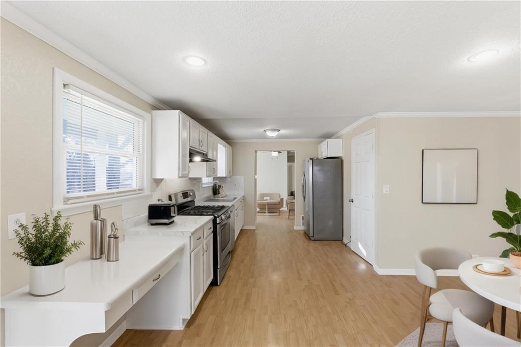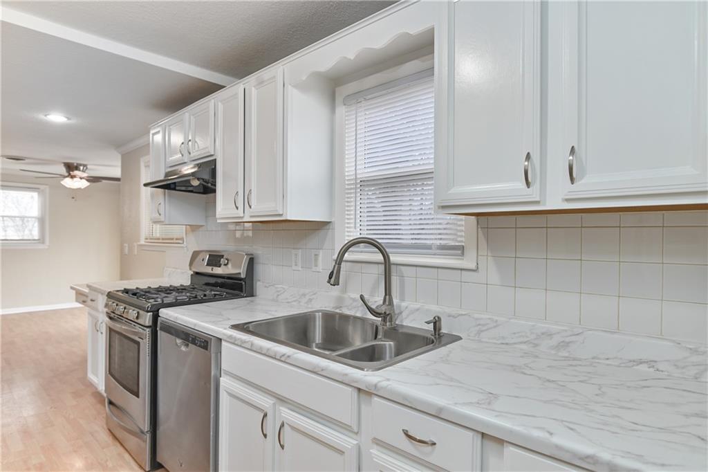 Fully remodeled home on a rare ½-acre lot! This 3 bedroom, 2 bathroom property features a finished basement offering flexible living space for a second living area, guest suite, or home office. Updated kitchen with white cabinetry, stainless steel appliances, modern finishes, and fresh flooring throughout. Spacious yard with mature trees—perfect for entertaining or future expansion. Move-in ready with easy access to shopping, dining, and highways.