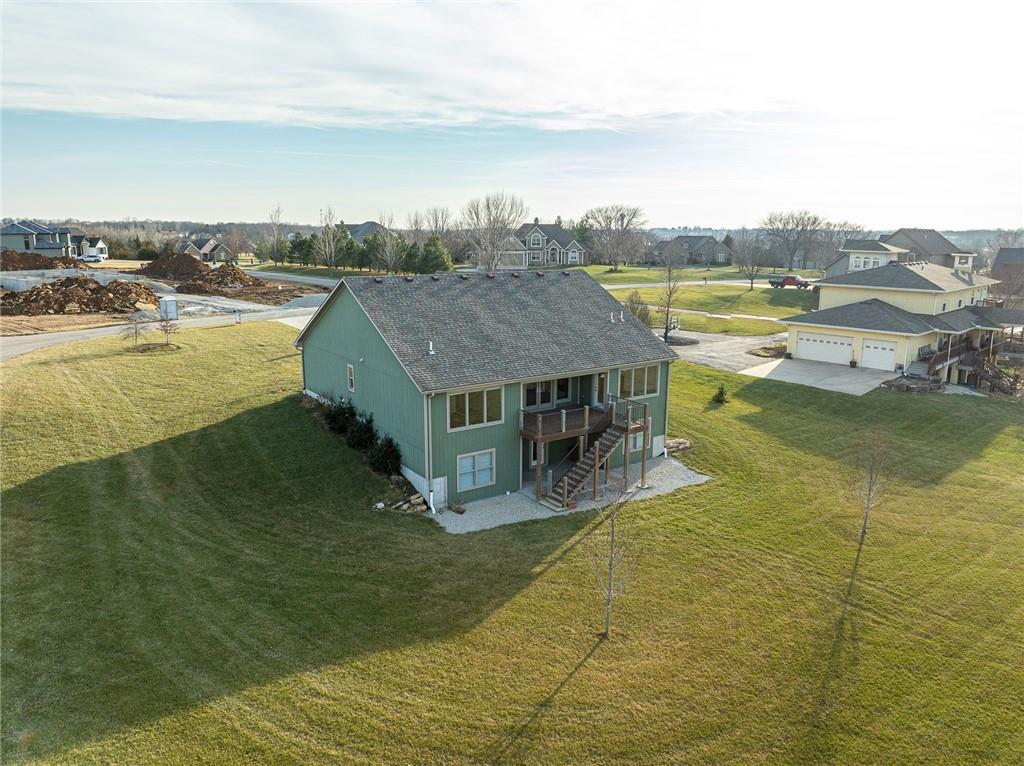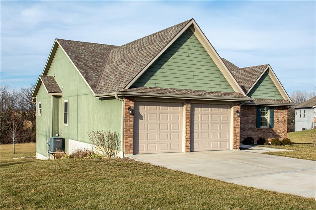 Step inside & instantly feel at home in this beautiful estate nestled on a peaceful 1-acre lot in highly sought-after Bur Oak Estates of Paola, KS. This stunning reverse 1.5 story ranch built in 2019, offers around 3,800 SQFT of thoughtfully designed living that blends comfort, functionality, & elegance. The main level welcomes you with an expansive great room perfect for big family gatherings, holidays, & entertaining friends. Natural light flows creating an inviting atmosphere that feels cozy. Just steps away the formal dining provides ideal setting for meals & special occasions. The heart of the home is a chef’s kitchen designed to impress & perform. Featuring custom cabinetry, cooktop, built-in oven & microwave stack, walk-in pantry, pullout mixer stand, & generous prep/storage space, this kitchen is equally suited for hosting parties or dinners. The primary suite on the main level offers a peaceful retreat, 2 additional bedrooms provide flexibility for family, guests or hobbies, and laundry room where you need it. Enjoy partially covered deck that invites you to relax with morning coffee or unwind in the evening enjoying your acreage. Downstairs, walk-out basement opens into a massive family & recreation area with plenty of room for a pool table or home theater. A storm shelter offers peace of mind, & 2 additional bedrooms with a full bath create the perfect setup for guests or extra family. One of these rooms can easily serve as a home office, workout space, or playroom, adapting to your lifestyle. With 3 full bathrooms, abundant storage, a 2-car attached garage, & layout designed for both entertaining & living. Located minutes from Lake Miola’s boat ramp and swim beach, you can enjoy the serenity of suburbia living while staying close to outdoor recreation and city conveniences. This is more than a house. It is a place to grow, gather, & create memories. A rare combination of space, craftsmanship, comfort, & value makes this custom home a great opportunity.