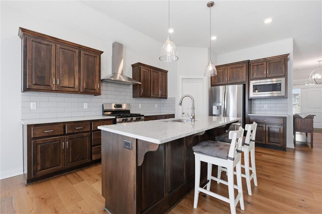 Stunning 4 bedroom, 3 bath home with a finished lower level in a highly desirable Lee’s Summit community! This wide-open floor plan is loaded with upgrades and “bells & whistles,” including granite countertops, custom cabinetry, pendant lighting, gas fireplace, walk-in pantry and an in-ground sprinkler system. The spacious kitchen opens seamlessly to the main living area—perfect for everyday living and entertaining. The oversized primary suite, dedicated office space, laundry room and guest bedroom are all conveniently located on the main level. Step outside to enjoy the covered deck overlooking a huge walkout courtyard-style backyard—ideal for relaxing or hosting guests. The finished lower level offers incredible additional living space with a rec room, bedroom, full bath, and ample storage. Residents enjoy resort-style amenities including a new clubhouse, 3 swimming pools with covered cabanas, 3 community playgrounds, and a sand volleyball court. Located adjacent to Osage Trails Park, providing easy access to walking trails, picnic areas, and additional playgrounds. This family-oriented neighborhood is within the Lee’s Summit West School District and is just minutes from charming Downtown Lee’s Summit, premier golf courses, and outdoor recreation at Longview Lake and James A. Reed Memorial Wildlife Area. A perfect blend of comfort, location, and lifestyle—this one is a must-see!