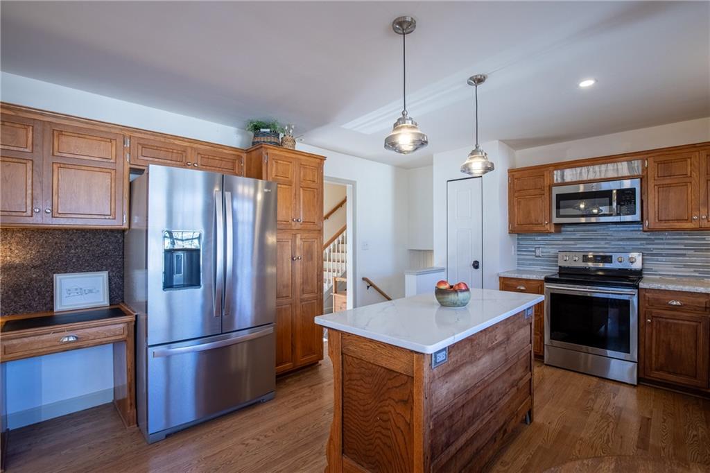 Stunning 4 bedroom detailed-lovers dream home nestled on 2/3 of an acrea in a fantastic subdivision close to schools and shopping! 4 distinct levels incorporate beautiful wood floors, brick tile flooring, double-glazed wood paned windows, & bright lighting throughout. Spacious kitchen w/island w/GFCI outlets opens to large dining room. Living room with box bay! Spacious bedrooms! Cozy family room w/signature carpet flooring & wood beams exits to an outdoor patio space with vaulted ceiling. Office room off family room that could be converted back to a large laundry room. New roof in 2022, new storm windows, water filtration system installed, generator transfer switch installed, and 16 X 10 lofted shed. Huge unfinished basement for storage or to be finished off! This home is a must to See!