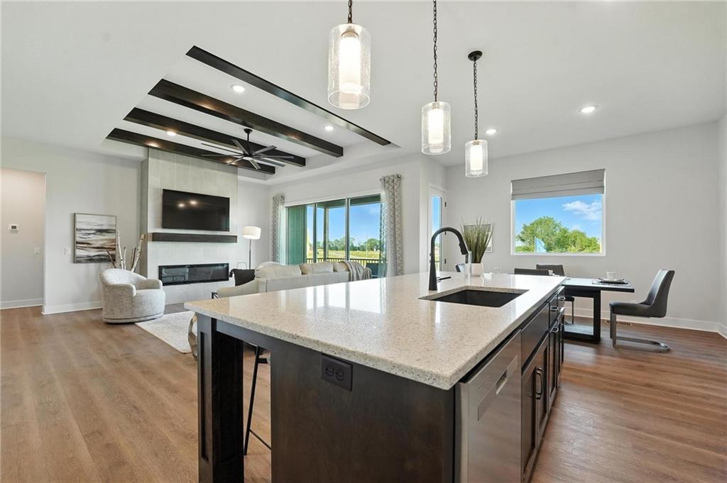 The popular Thomas model by Hakes Brothers features 3 main-level bedrooms, 2.5 baths, a 2-car garage, and an unfinished basement ready for your personal design. Upgrades include a stacking patio door, 8-foot main-level doors, a gourmet kitchen with built-in stainless-steel appliances (gas cooktop, oven, microwave), and an irrigation system for new sod. Located in Grayhawk at Prairie Gardens, the community offers a pool, playground, green space, and walking trails. Just minutes from The Legends shopping and dining, quick access to K-7 and major highways, and about 30 minutes to Kansas City International Airport. Top-rated schools, nearby retail, and a vibrant community atmosphere make this a must-see home.