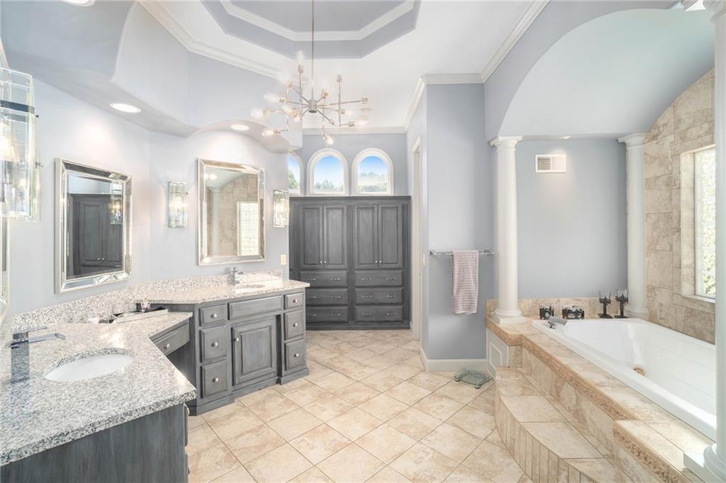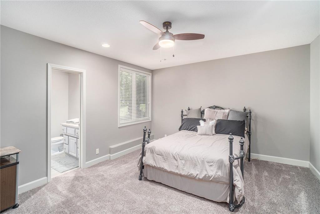 This magnificent Reverse 1.5 Story in Tremont Manor sits on a desirable corner lot backing to lush, mature trees, offering both privacy and curb appeal. Thoughtfully updated throughout, the home features soaring ceilings, beautiful built-ins, and an open, airy floor plan designed for comfortable living and effortless entertaining. The kitchen showcases hardwood floors, a generous island, and abundant cabinetry, flowing seamlessly into the main living spaces. The spacious primary suite is a true retreat with dual vanities, custom built-ins, a walk-in shower, and a separate whirlpool tub. A well-appointed main-level office is filled with natural light, making it ideal for working from home. The finished lower level is perfect for entertaining, complete with a full bar, game area, and expansive family room. The impressive 19x22 suspended garage provides exceptional storage and features a convenient double-door exterior entrance. Step outside to enjoy the peaceful backyard from the covered deck or patio. Recent updates include a newer roof, updated interior and exterior paint, refreshed landscaping, updated light fixtures, flooring, and more. A truly exceptional home—this one is a must-see!